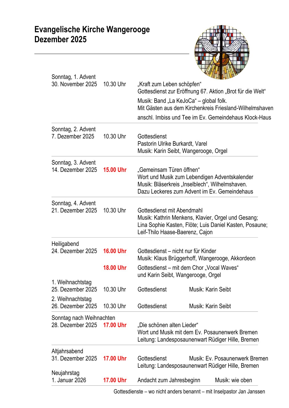 06.12.2025 Nikolausfest in und an der ev. Nikolaikirche auf Wangerooge Das Nikolausfest in und an der ev. Nikolaikirche auf Wangerooge