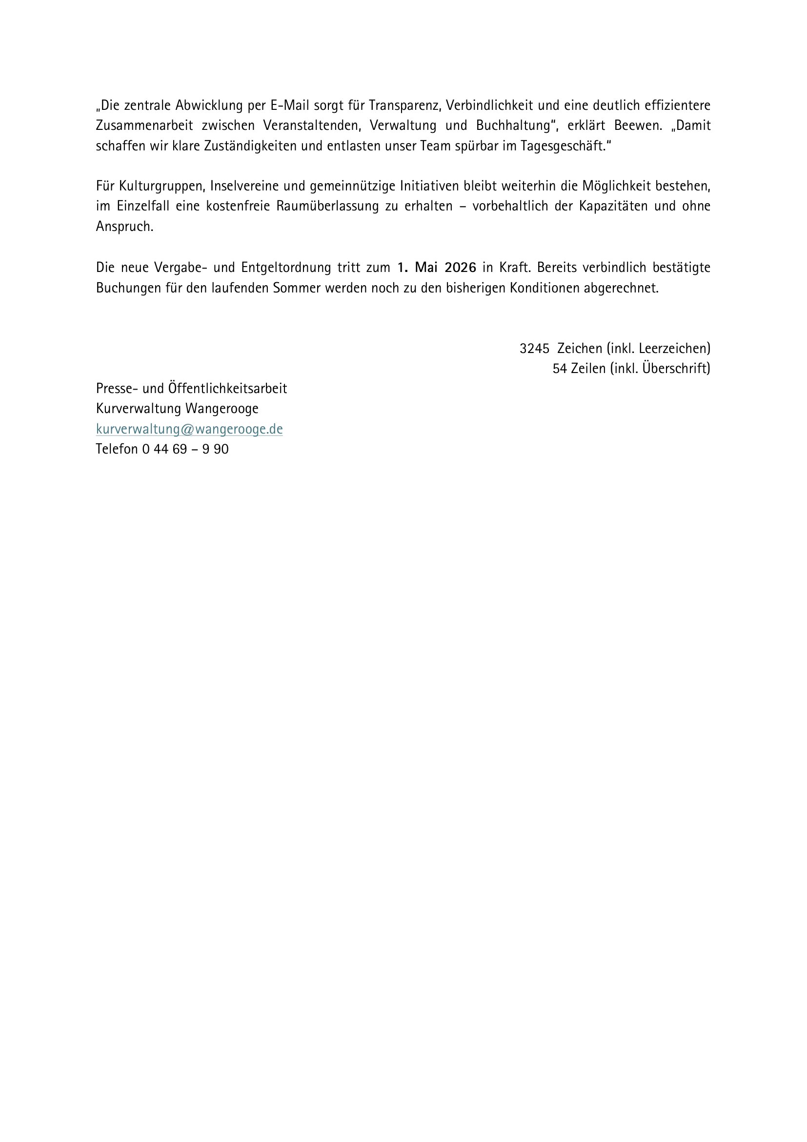 Presseinfo 04-26 Grüne Wangerooger – Anzeige und Gesuch auf Rechtsauskunft an die Untere Naturschutzbehörde des LK Friesland