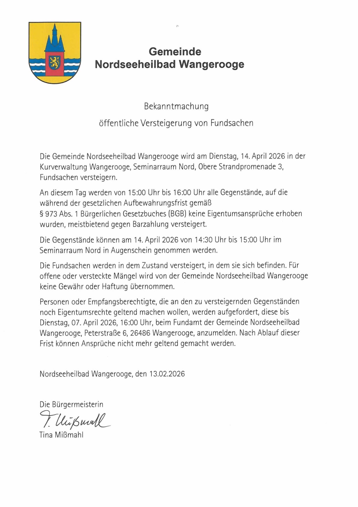 15.04.2026 Presseinfo 04-26 Die Grünen Wangerooger – Anzeige und Gesuch auf Rechtsauskunft an die Untere Naturschutzbehörde des LK Friesland