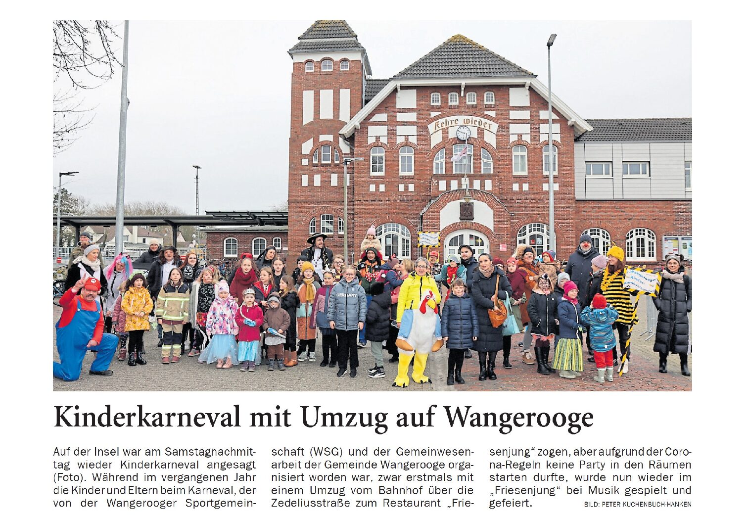 11.02.2023 Kinderkarneval – Umzug vom Bahnhof zum Friesenjung Im letzten Jahr zogen die Kinder mit ihren Eltern beim Kinderkarneval der