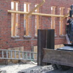 An den Fassaden des BWSW werden Holzstützen angebracht, um weitere Schäden zu vermeiden.