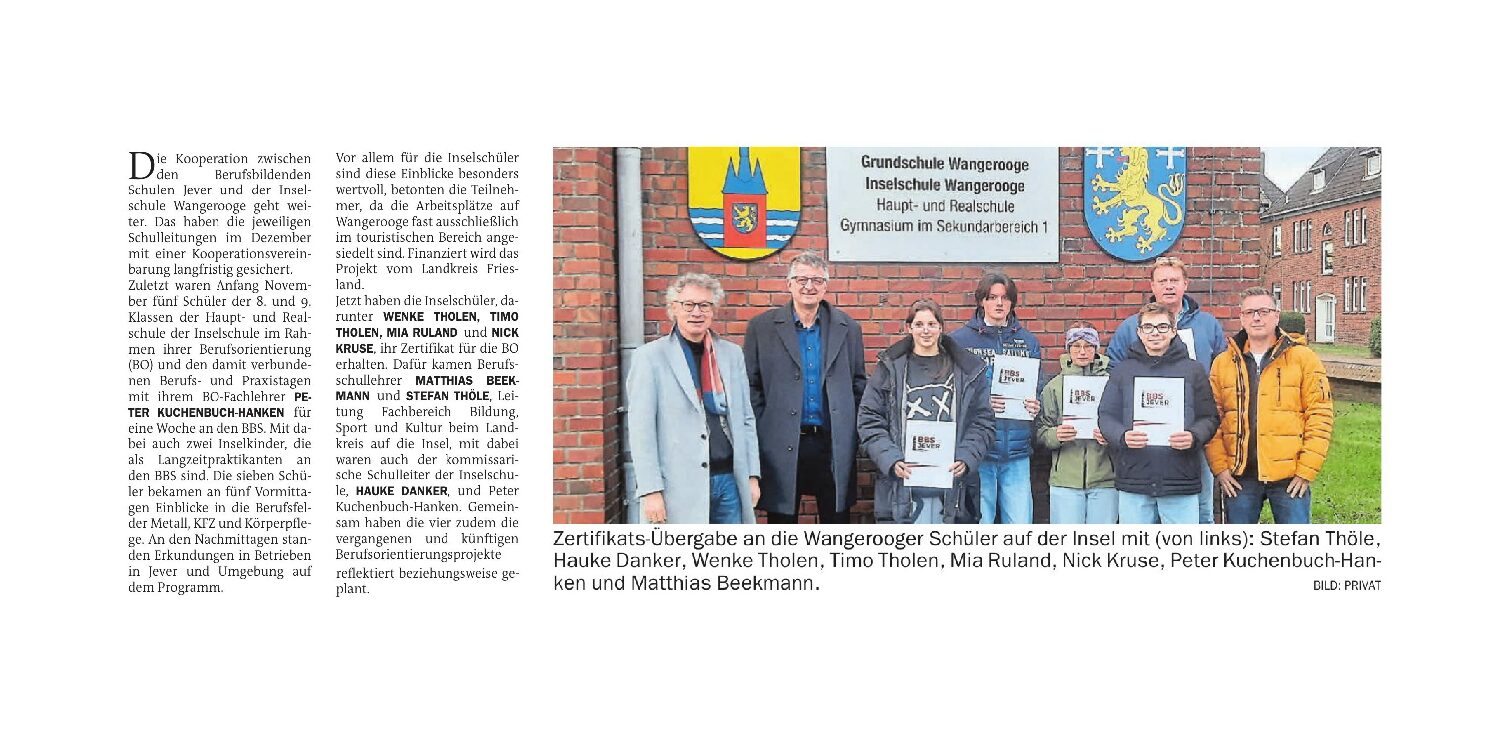 Read more06.01.2026 Jeversches Wochenblatt – Zertifikats-Übergabe an die Wangerooger Schüler auf der Insel