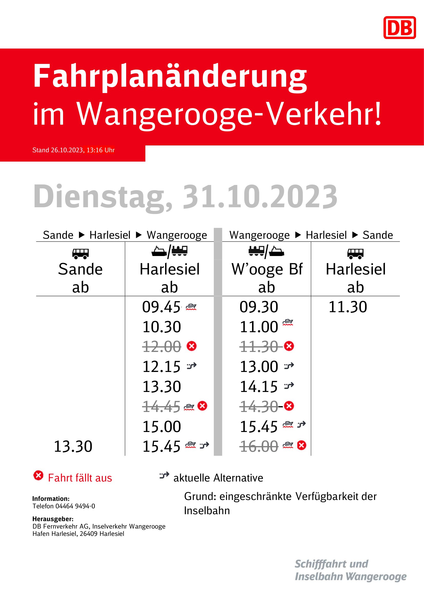 Fahrplanänderung Dienstag 31.10.23