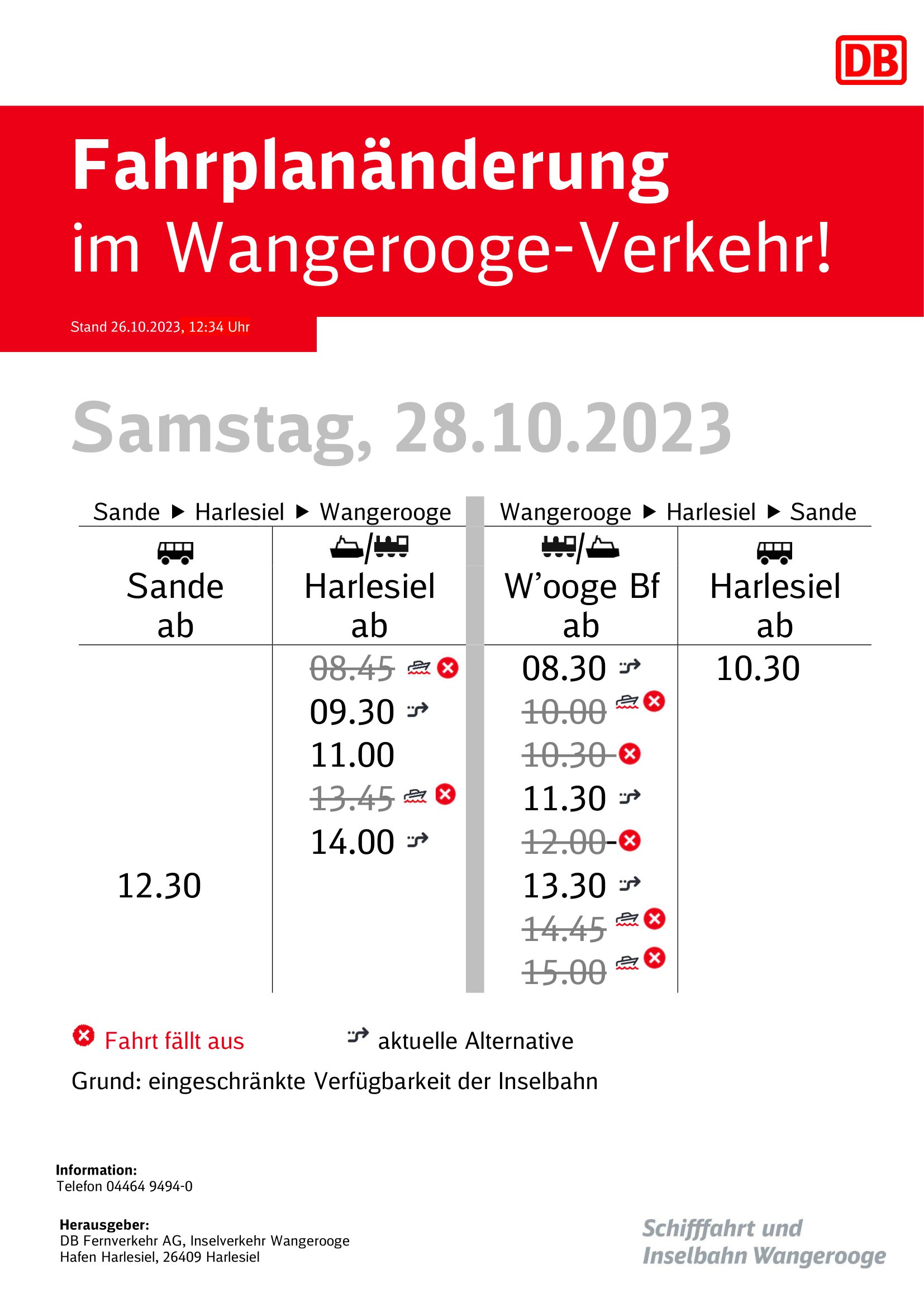Fahrplanänderung Samstag 28.10.23