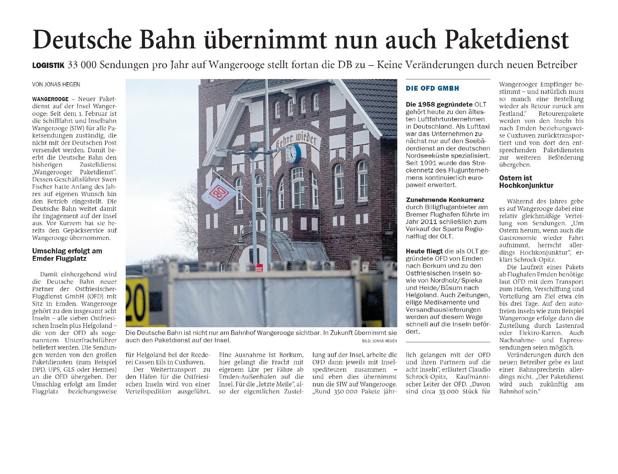 Jeversches Wochenblatt Leute 02.02.2023 Jeversches Wochenblatt – Deutsche Bahn übernimmt nun auch Paketdienst 1. Februar 20231. Februar 2023 peter Post Views: 299
