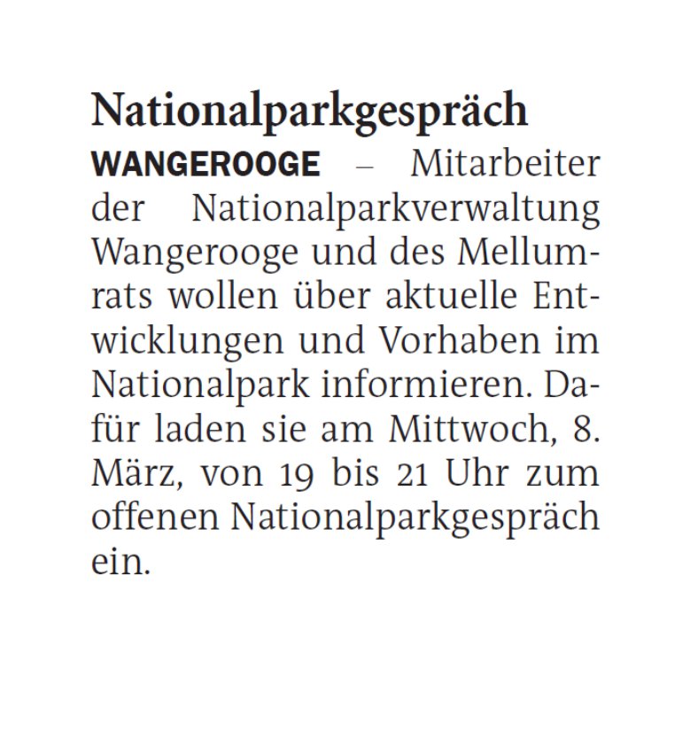 Jeversches Wochenblatt Leute Natur See 02.03.2023 Jeversches Wochenblatt – Nationalparkgespräch 1. März 20231. März 2023 peter Post Views: 461