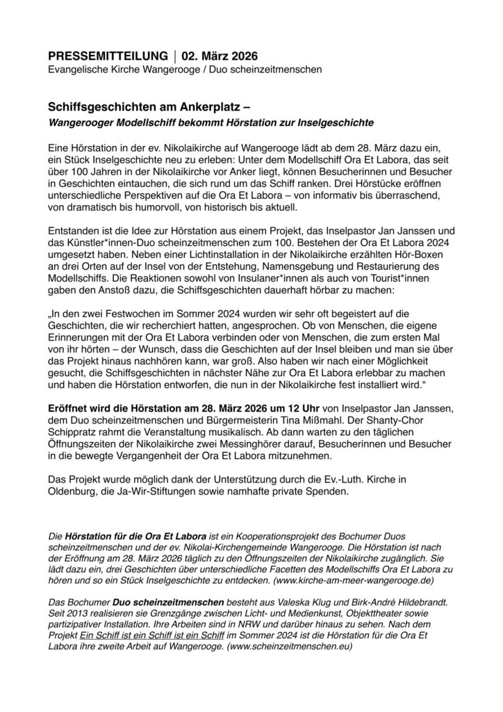 Aktuelles Leute 02.03.2026 Schiffsgeschichten am Ankerplatz – Wangerooger Modellschiff bekommt Hörstation zur Inselgeschichte 2. März 20262. März 2026 peter Post Views: 7