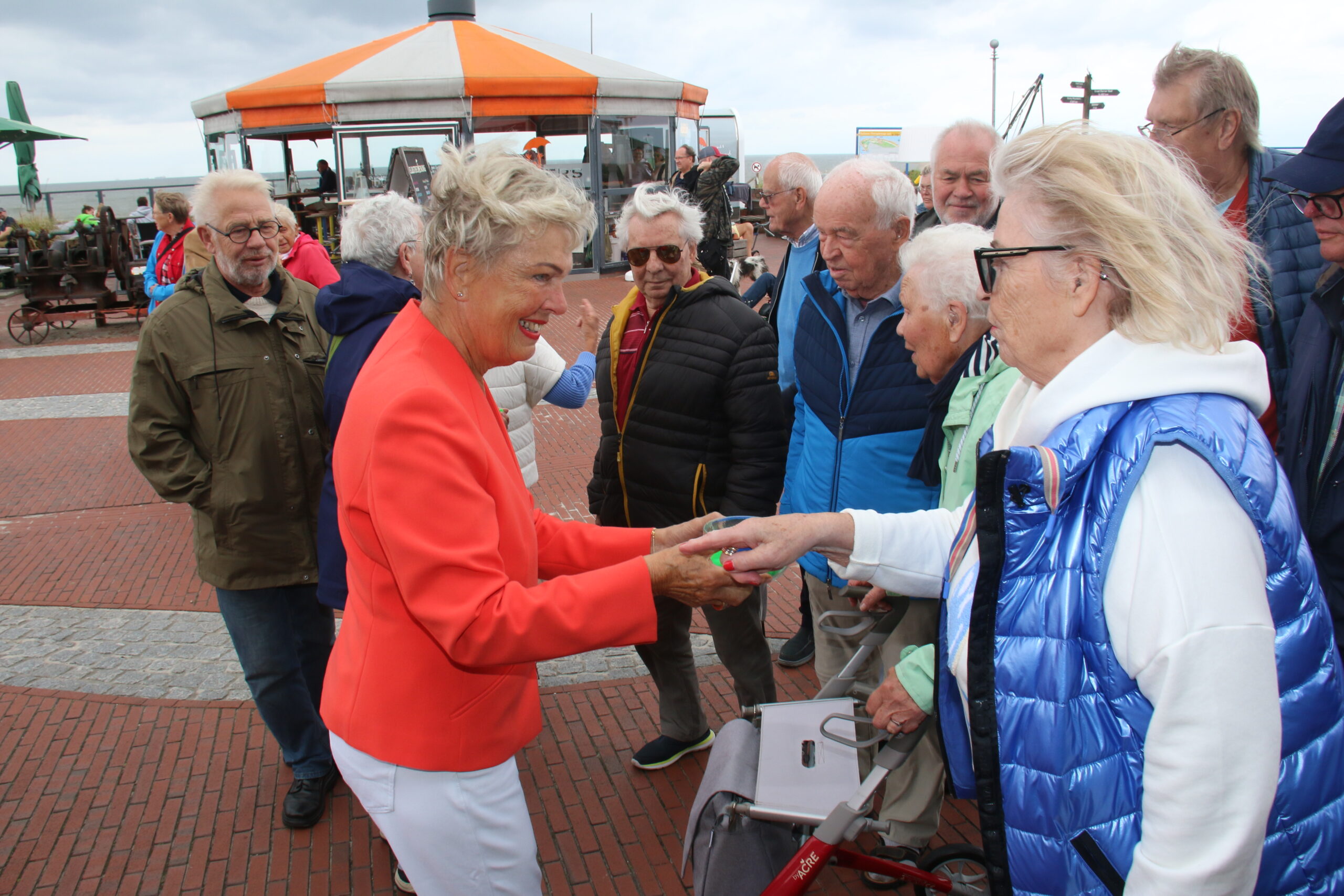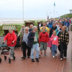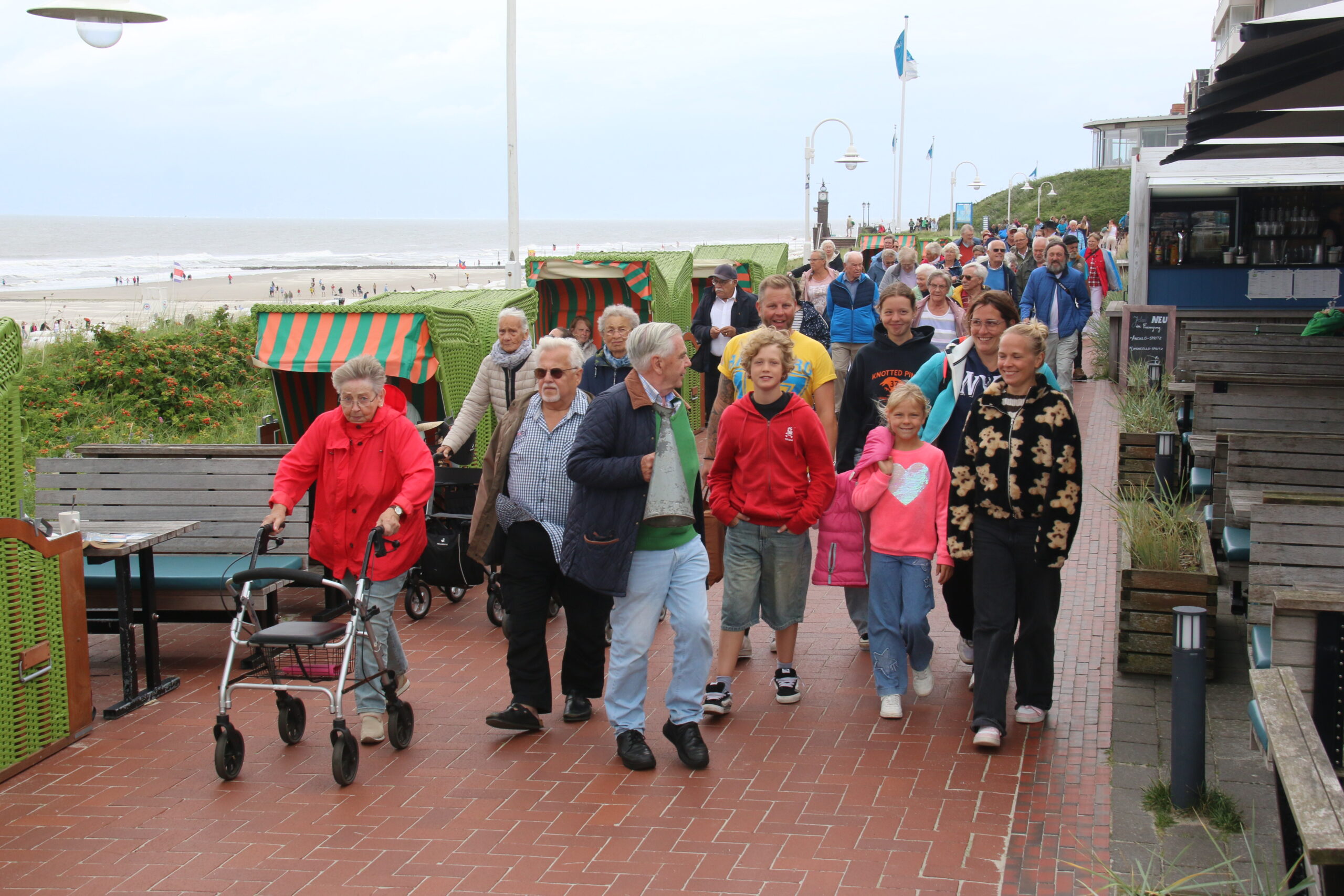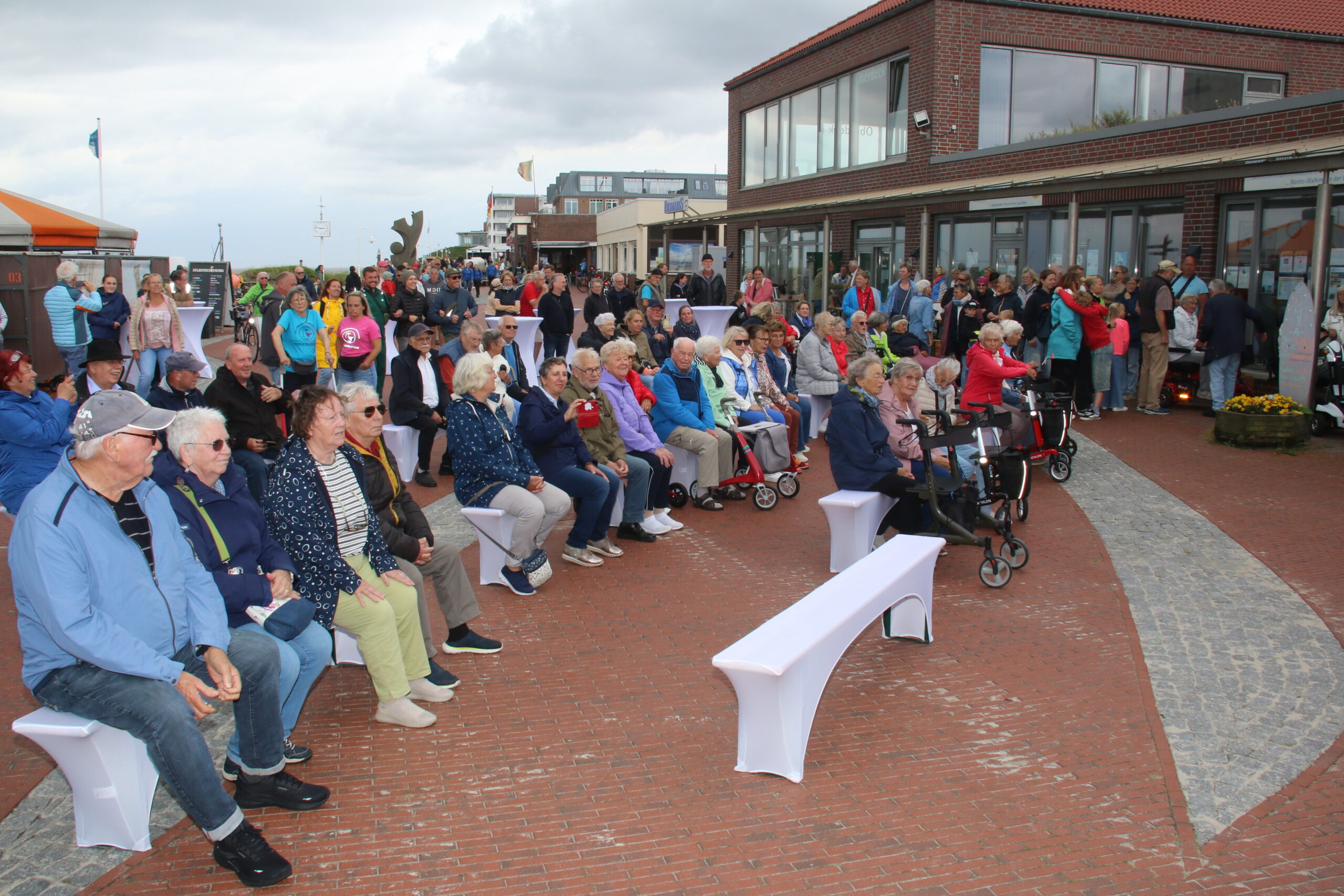 Um 14.30 Uhr ging es los, alle Rolli-Senioren, ob Rollstuhl, oder Rollator trafen sich am Pudding bei den Seehunden, von dort ging es mit dem Ausrufer Hein Wooge mit musikalischer Begleitung zum Platz am Meer.