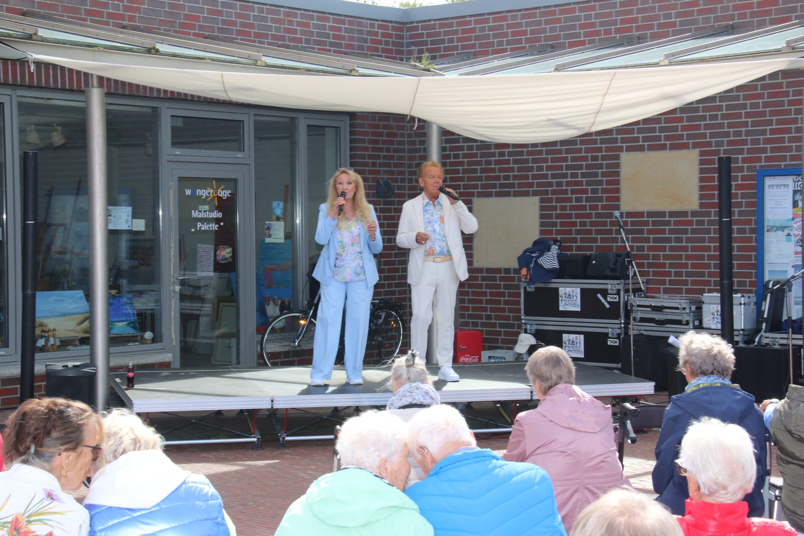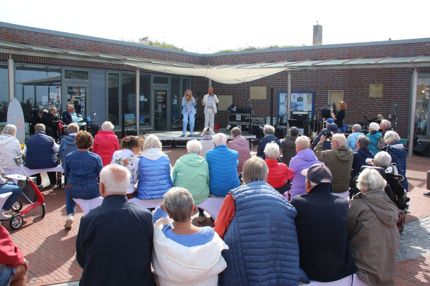 Das Gesangsduo “Judith & Mel”, Frank-Sinatra-Double Jens Sörensen, Parodist Jörg Hammerschmidt, sowie die Inselcombo begleiteten die gut 200 erschienenen Senioren durch den einen wunderschönen Nachmittag. Alle Künstler traten ohne Gage , für den guten Zweck auf!