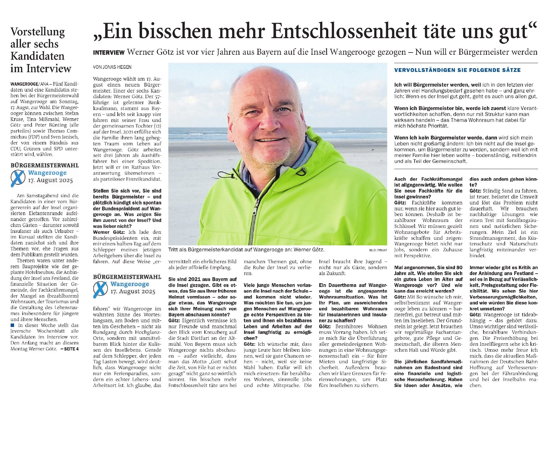 Jeversches Wochenblatt Leute Politik 04.08.2025 Jeversches Wochenblatt – Vorstellung aller sechs Kandidaten im Interview 3. August 20253. August 2025 peter Post Views: 546