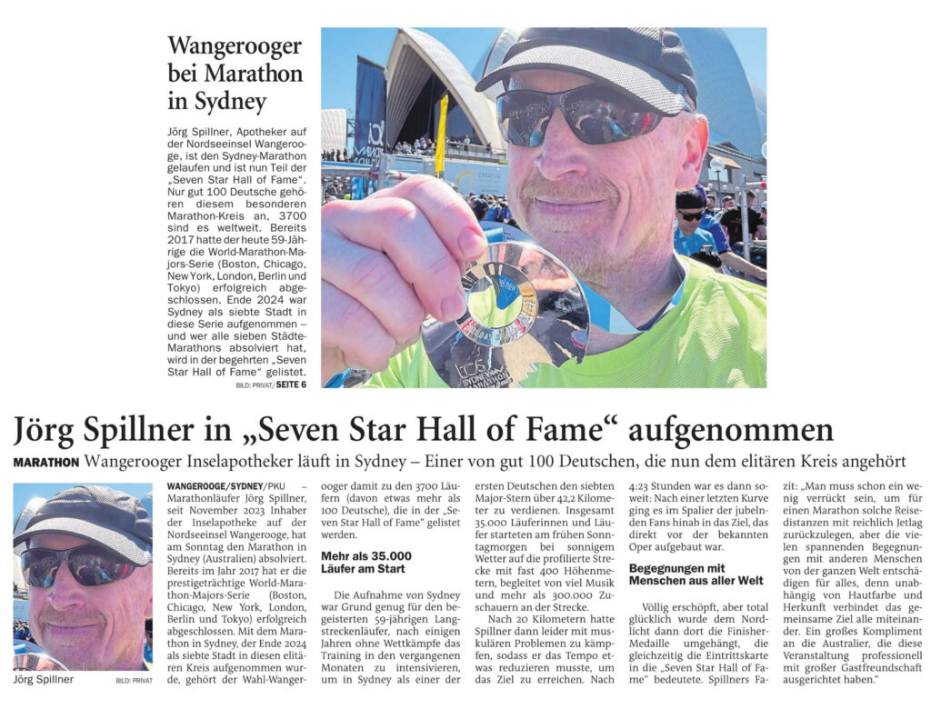 Jeversches Wochenblatt Leute 05.09.2025 Jeversches Wochenblatt – Wangerooger bei Marathon in Sydney – Jörg Spillner in “Seven Star Hall of Fame” aufgenommen 4. September 20254. Oktober 2025 peter Post Views: 622