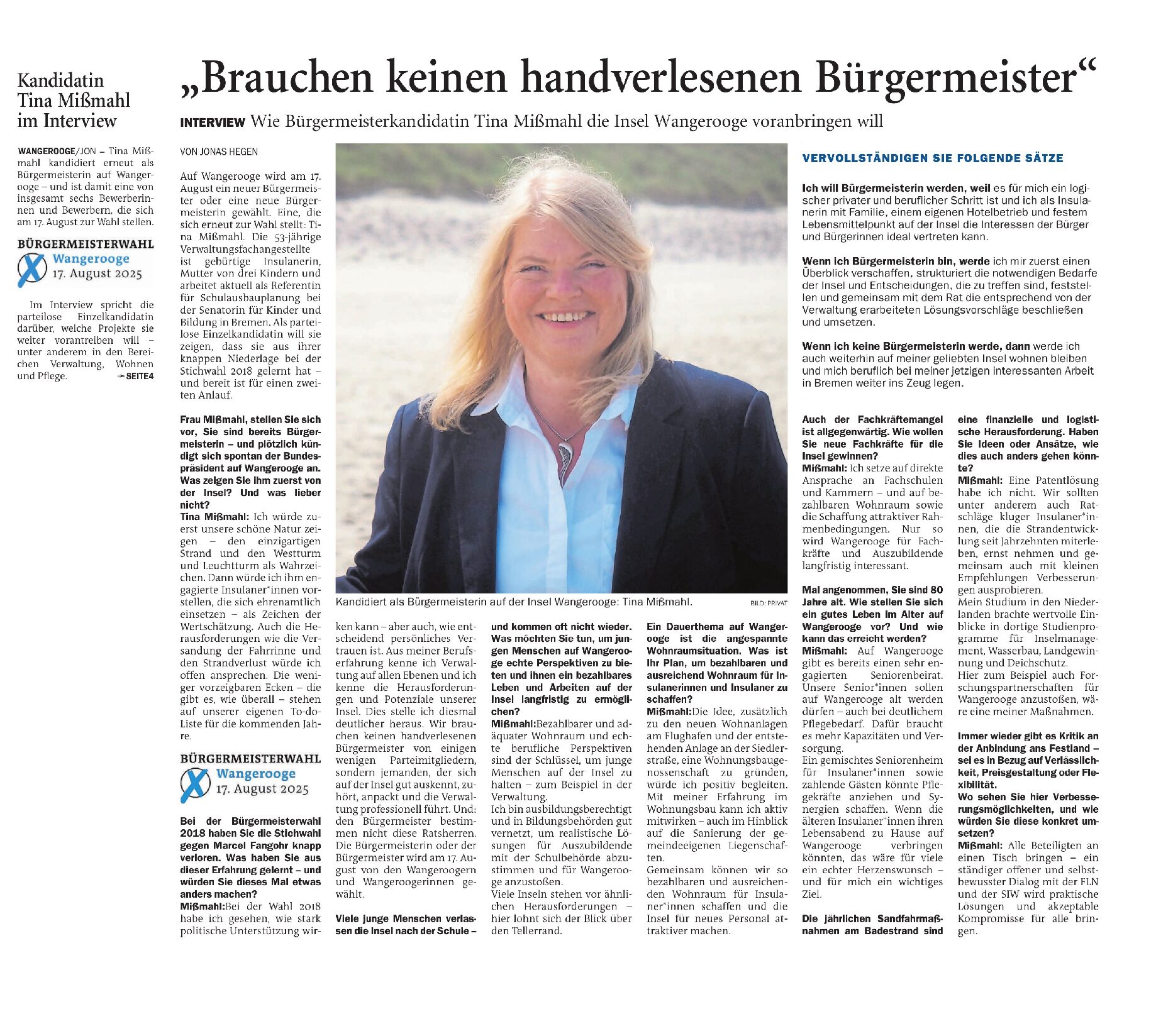 Jeversches Wochenblatt Leute Politik 06.08.2025 Jeversches Wochenblatt – “Brauchen keinen handverlesenen Bürgermeister” 5. August 20255. August 2025 peter Post Views: 492