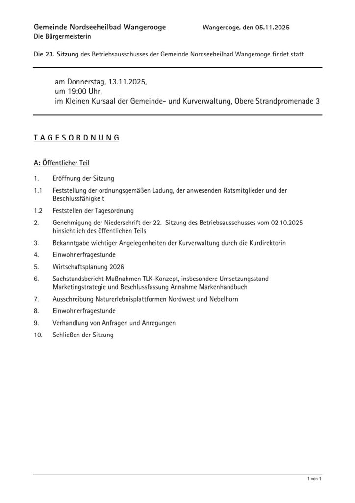 Aktuelles Leute Politik 06.11.2025 Einladung Betriebsausschuss Do.13.11.2025 – 19.00 Uhr Kleiner Kursaal 6. November 20256. November 2025 peter Post Views: 794