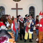 Erstmals führte der kath. Pastor Egbert Schlotmann mit der Rolle des Geschichtenerzählers durchs Programm. Aber auch in diesem Jahr konnte Nikolaus Markus der erste, der erstmals Verstärkung vieler mutiger Mütter erhielt, die Shanty Piraten bekehren und erneut den Raub der Kinder aus der Nikolaikirche verhindern.