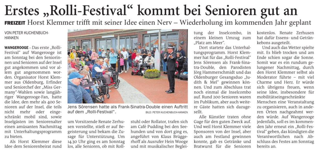Jeversches Wochenblatt Leute 07.08.2025 Jeversches Wochenblatt – Erstes “Rolli-Festival” kommt bei Senioren gut an 6. August 20256. August 2025 peter Post Views: 425