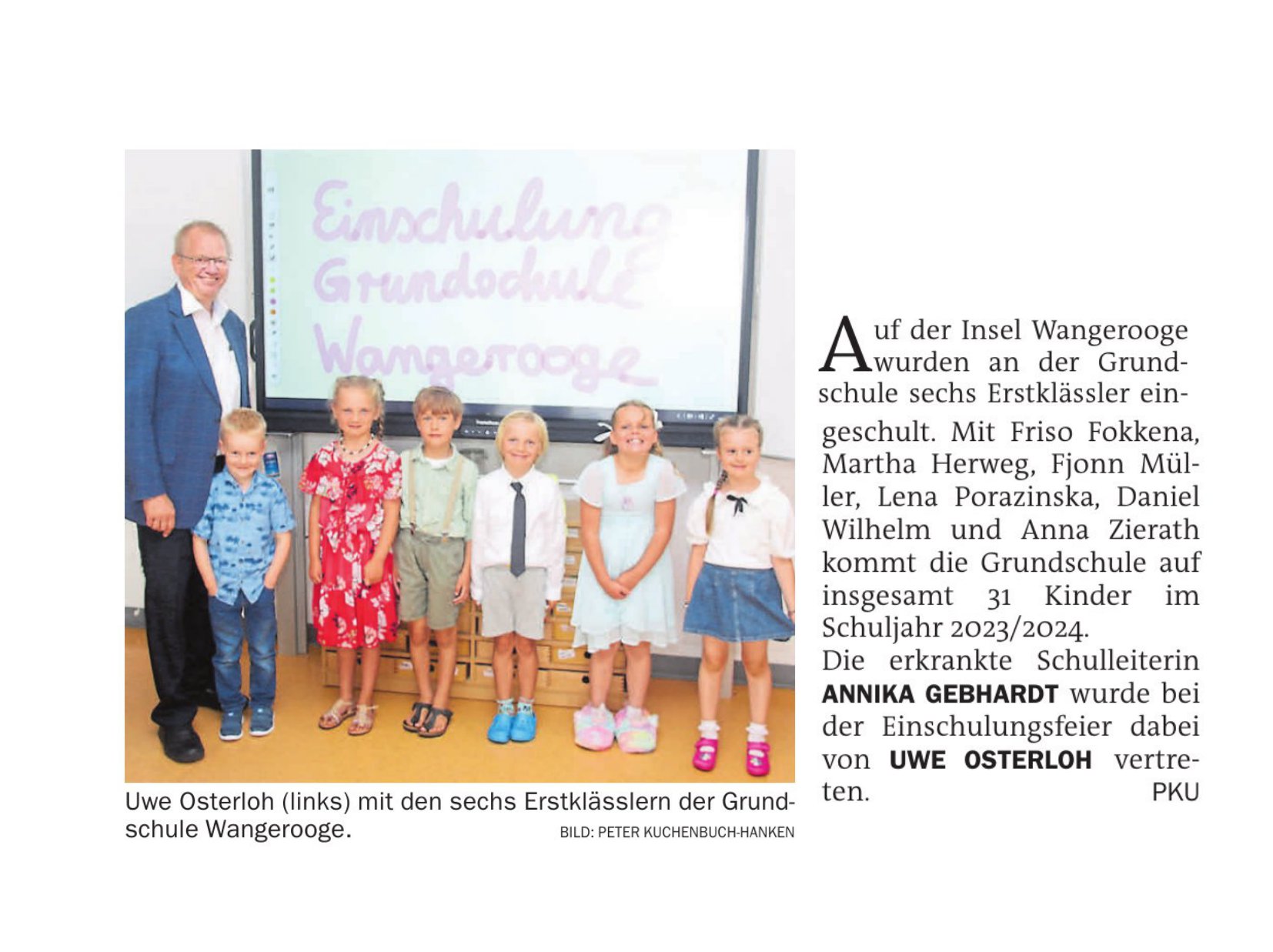 Jeversches Wochenblatt Leute 07.09.2023 Jeversches Wochenblatt – Einschulung auf Wangerooge 6. September 20236. September 2023 peter Post Views: 531