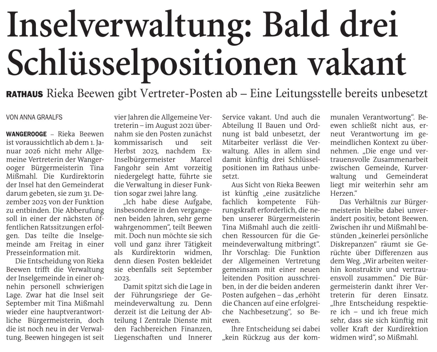Jeversches Wochenblatt Leute Politik 08.11.2025 Inselverwaltung: Bald drei Schlüsselpositionen vakant 7. November 20257. November 2025 peter Post Views: 1.129