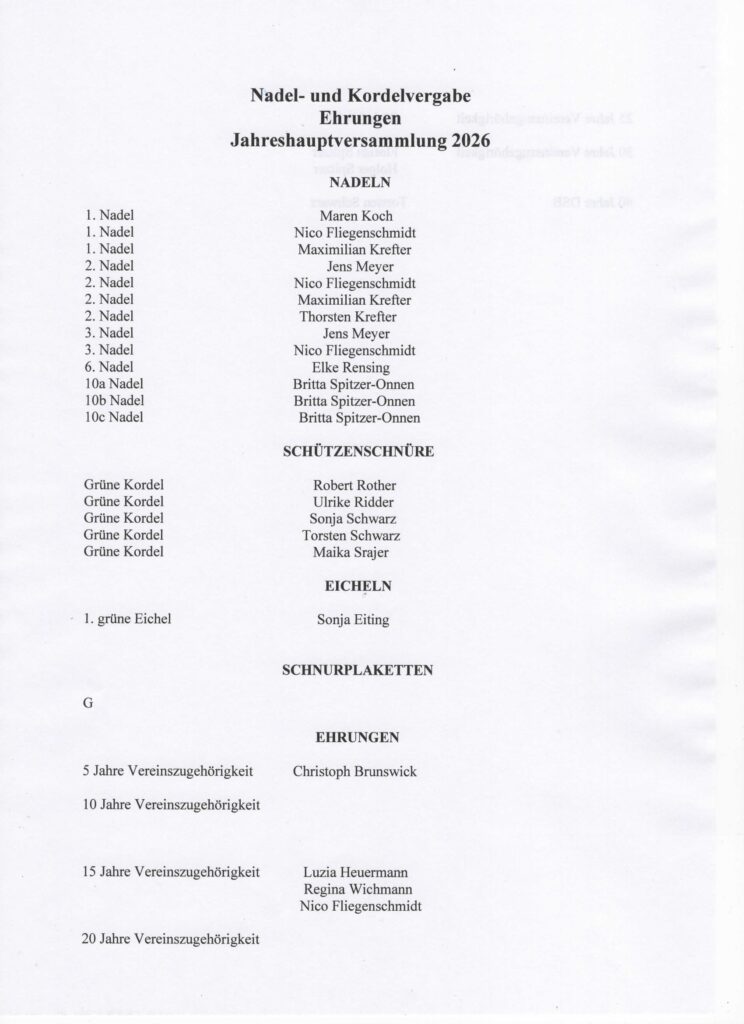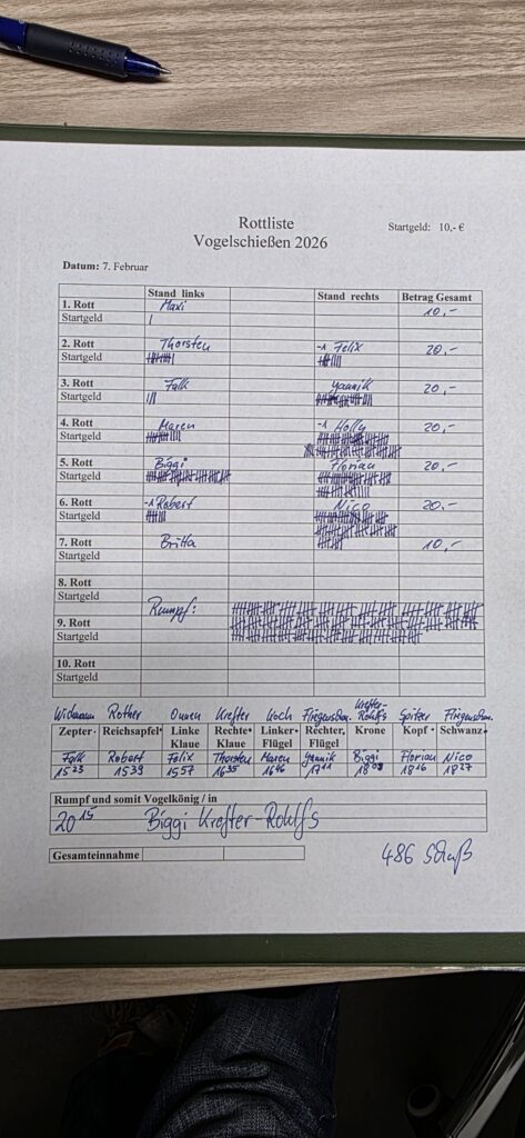 09.02.2026 – 31.Jahreshauptversammlung Schützenverein Nordseeheilbad Wangerooge von 1994 e.V. – Birgitt Krefter Rohlfs Vogelkönigin
