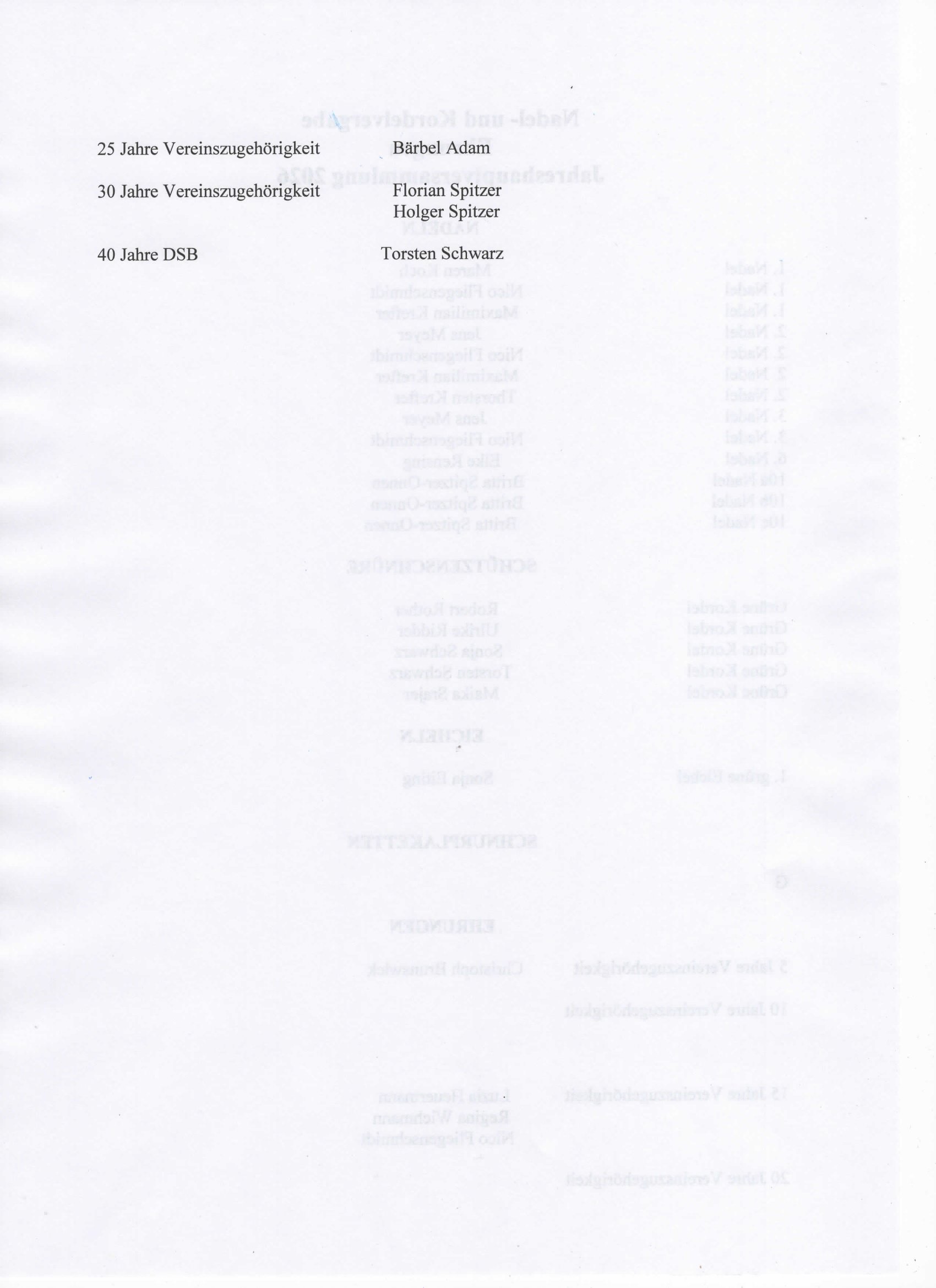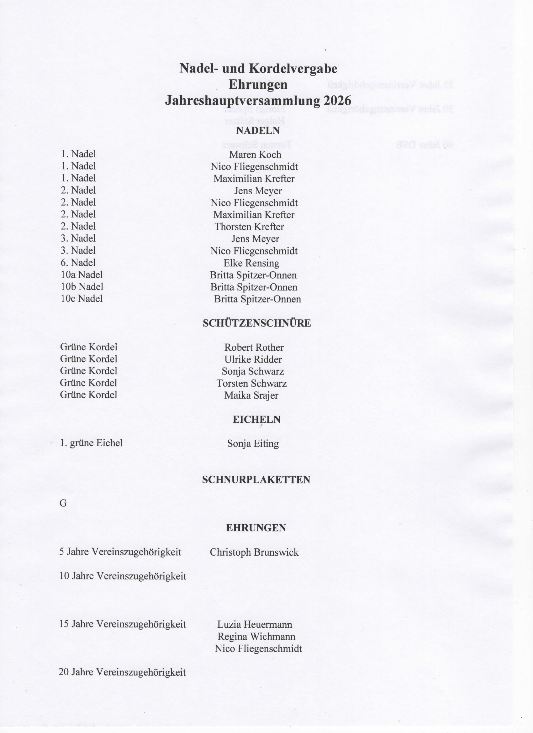 Davon 1 Ehrenmitglied, 29 aktive und 85 passive Schützen.