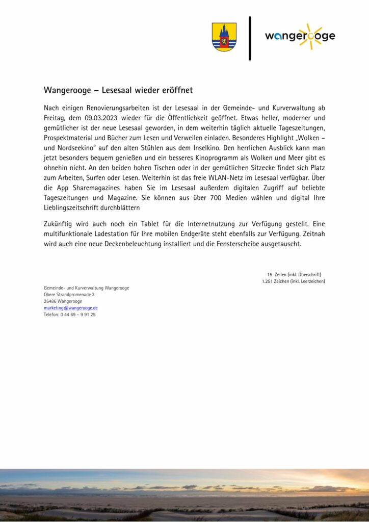 Aktuelles Leute 09.03.2023 Kurverwaltung: Lesesaal wieder geöffnet 9. März 20239. März 2023 peter Post Views: 681