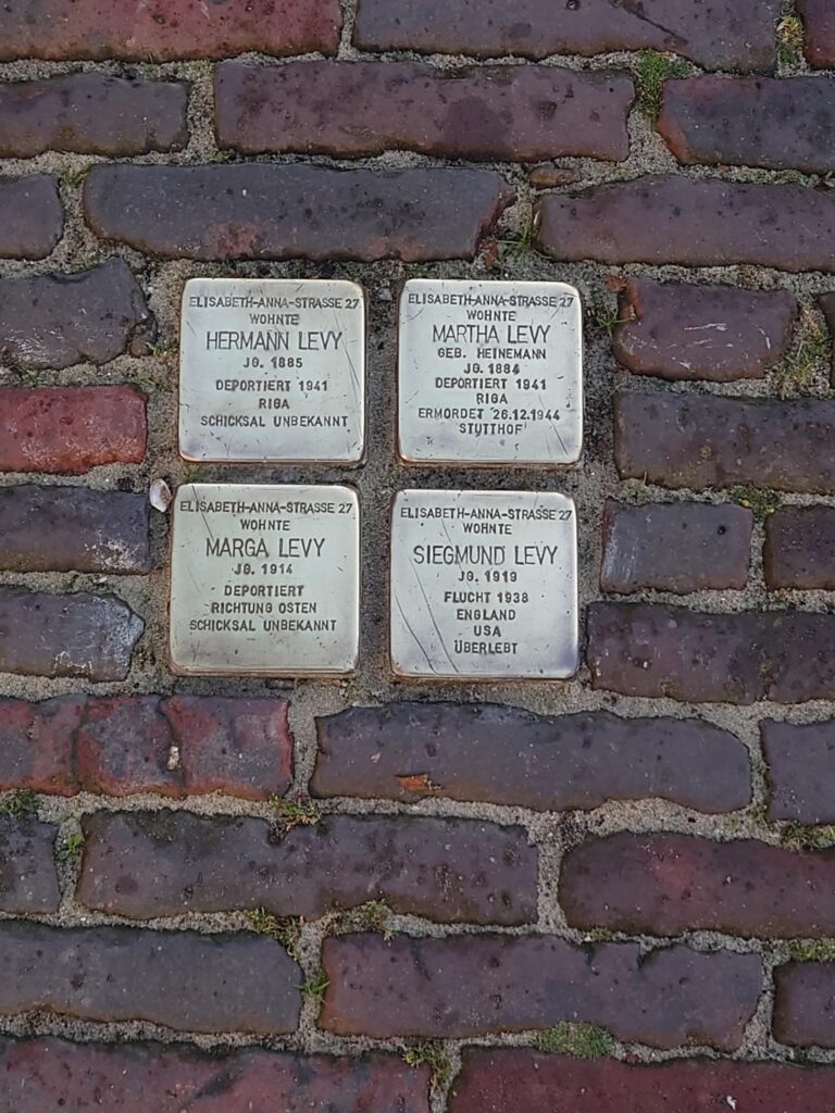 Bei ihren Recherchen auf der Insel, unter anderem auch durch Gesprächen mit Zeitzeugen, erhielten sie die Information, dass es auch auf Wangerooge eine Familie gab, die dem Holocaust zum Opfer gefallen war. Die Verlegung der Stolpersteine zum Gedenken an diese Familie Levy sollte das Abschlussprojekt der Klasse auf der Insel werden.