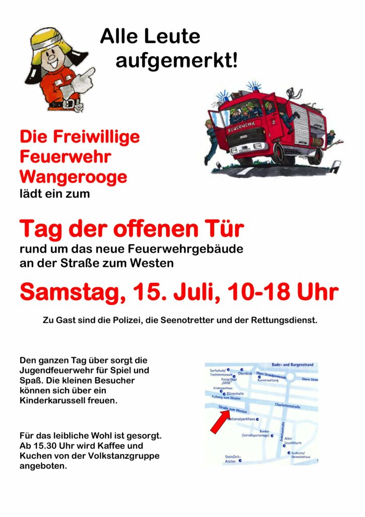 Aktuelles Leute 10.07.2023 Tag der offenen Tür der Freiwilligen Feuerwehr Wangerooge – Sa. 15.07.23 – 10.00-18.00 Uhr 10. Juli 202310. Juli 2023 peter Post Views: 434