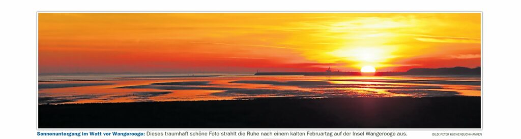 Jeversches Wochenblatt Leute See 13.02.2023 Jeversches Wochenblatt – Foto: Sonnenuntergang im Watt auf Wangerooge 12. Februar 202312. Februar 2023 peter Post Views: 374