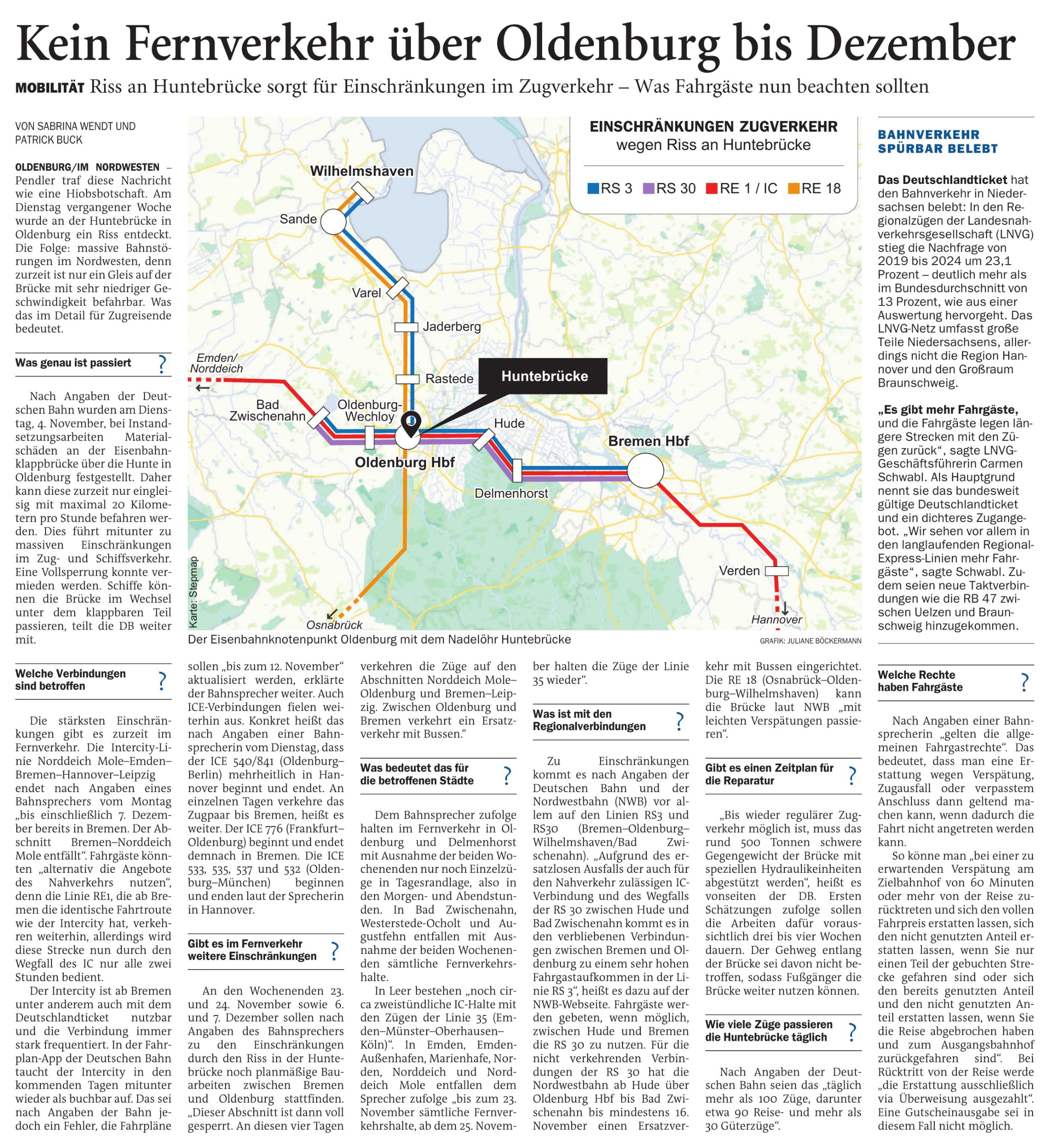 Jeversches Wochenblatt Leute 13.11.2025 Jeversches Wochenblatt – Kein Fernverkehr über Oldenburg bis Dezember 12. November 202512. November 2025 peter Post Views: 20