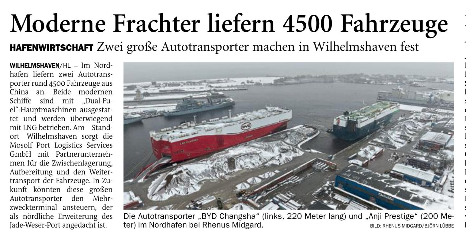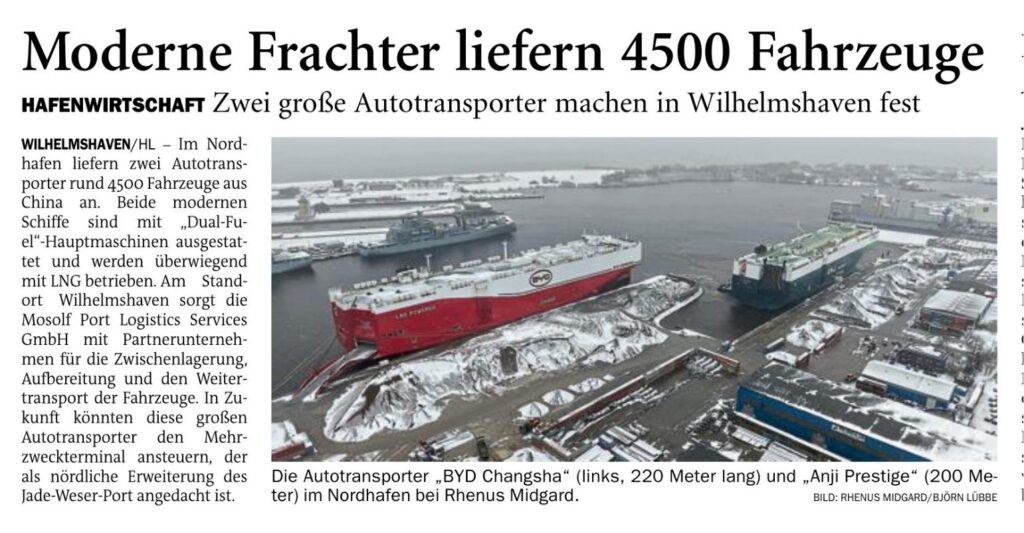 Jeversches Wochenblatt Leute See 14.02.2026 Jeversches Wochenblatt – Moderne Frachter liefern 4500 Fahrzeuge 13. Februar 202613. Februar 2026 peter Post Views: 3