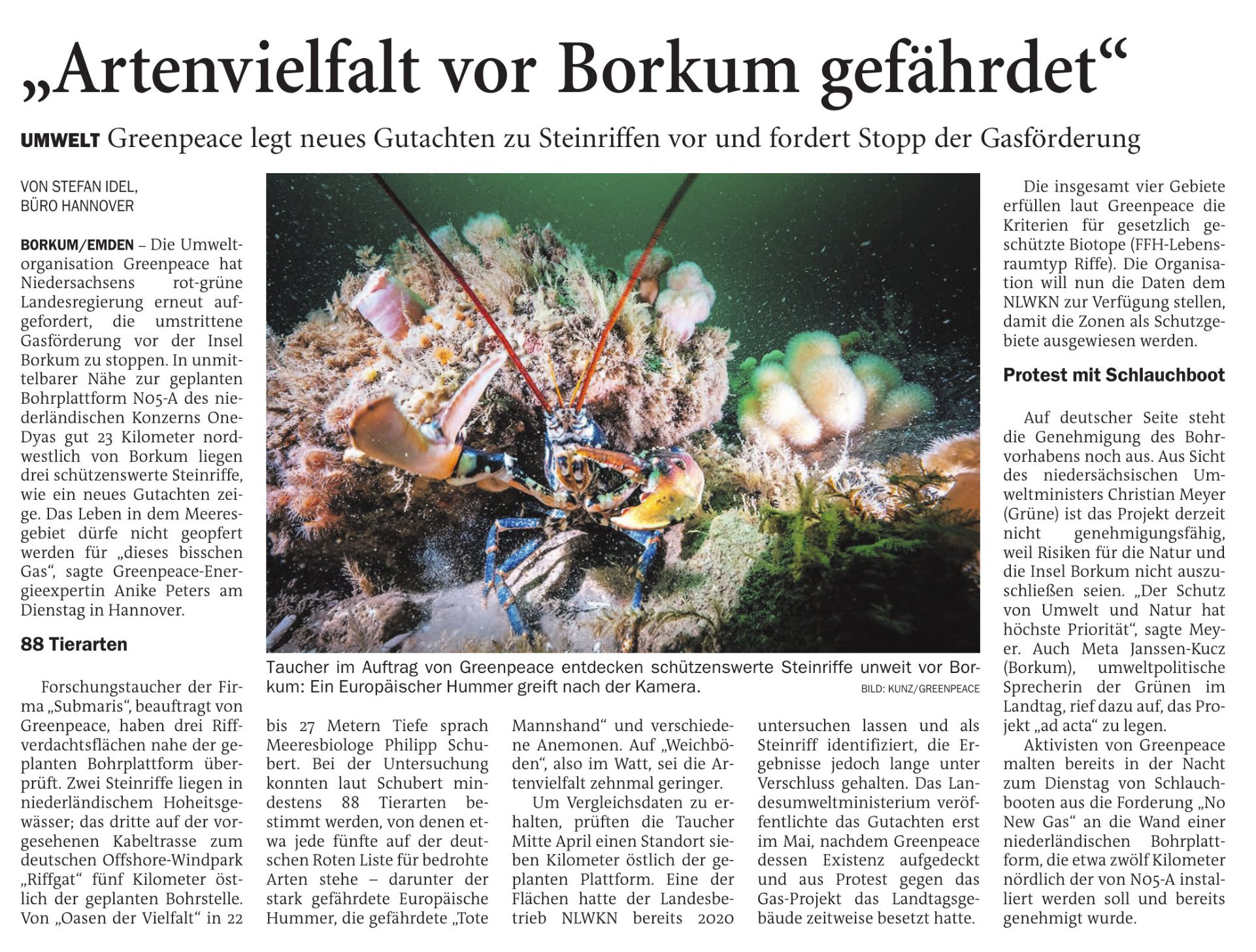 Jeversches Wochenblatt Leute See 14.06.2023 Jeversches Wochenblatt – Artenvielfalt vor Borkum gefährdet 13. Juni 202313. Juni 2023 peter Post Views: 298