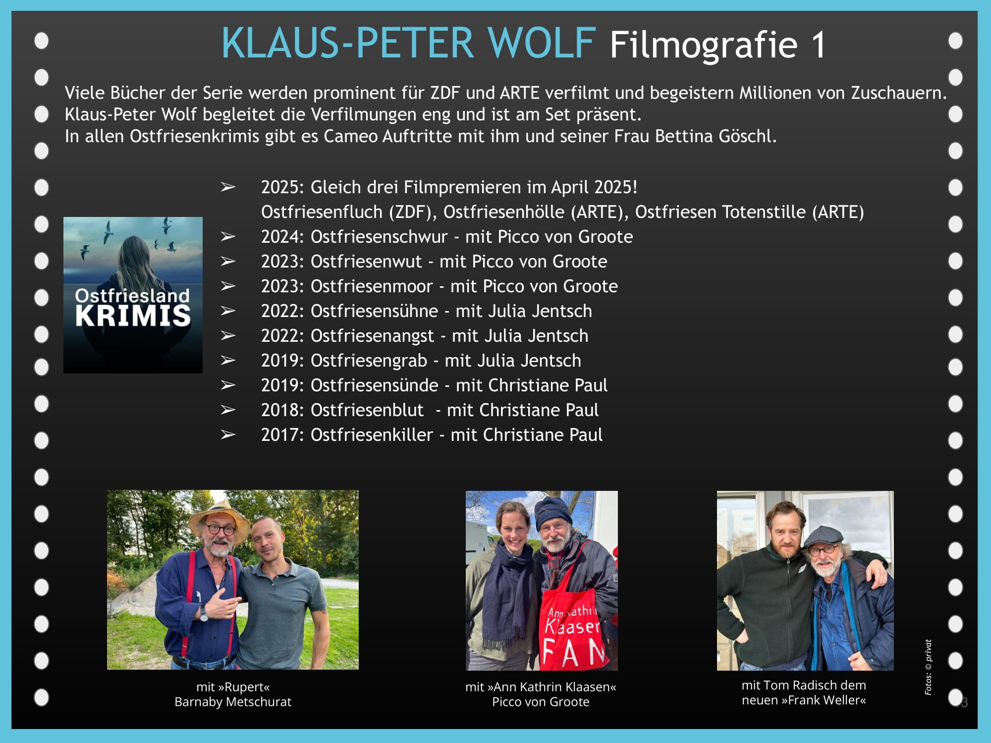 Nach 15 Millionen verkaufter Bücher und äußerst erfolgreichen Verfilmungen, die in 32 Ländern laufen, feiert Klaus-Peter Wolf mit dem 20. Band, „Ostfriesenerbe“, ein erstaunliches Jubiläum. Vor Kurzem erhielt er den Media Control Premium Award als meistverkaufter Kriminalschriftsteller in 2024 und 25.