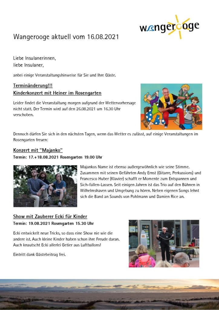16.08.2021 Wangerooge Aktuell der Kurverwaltung