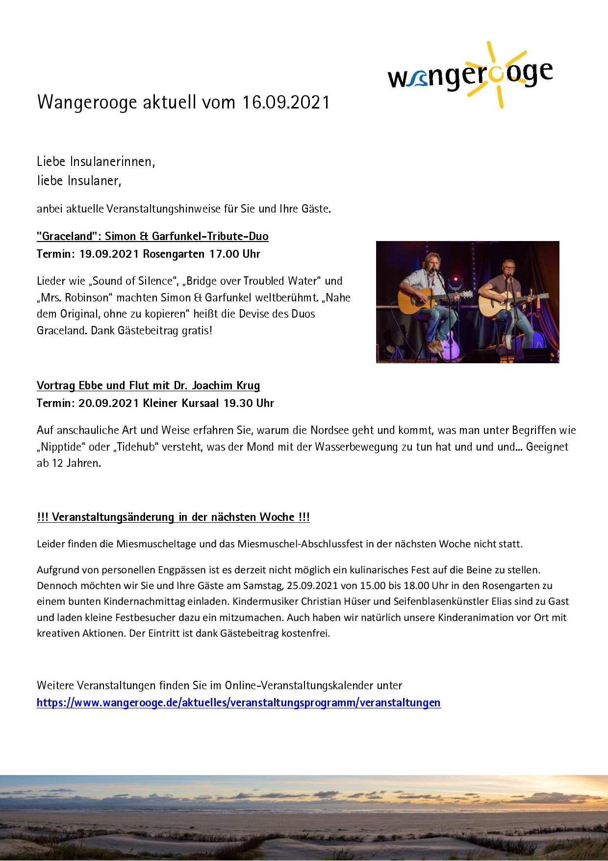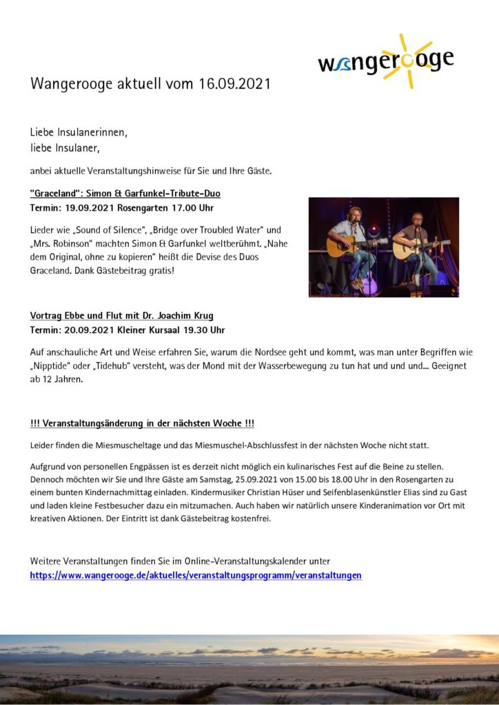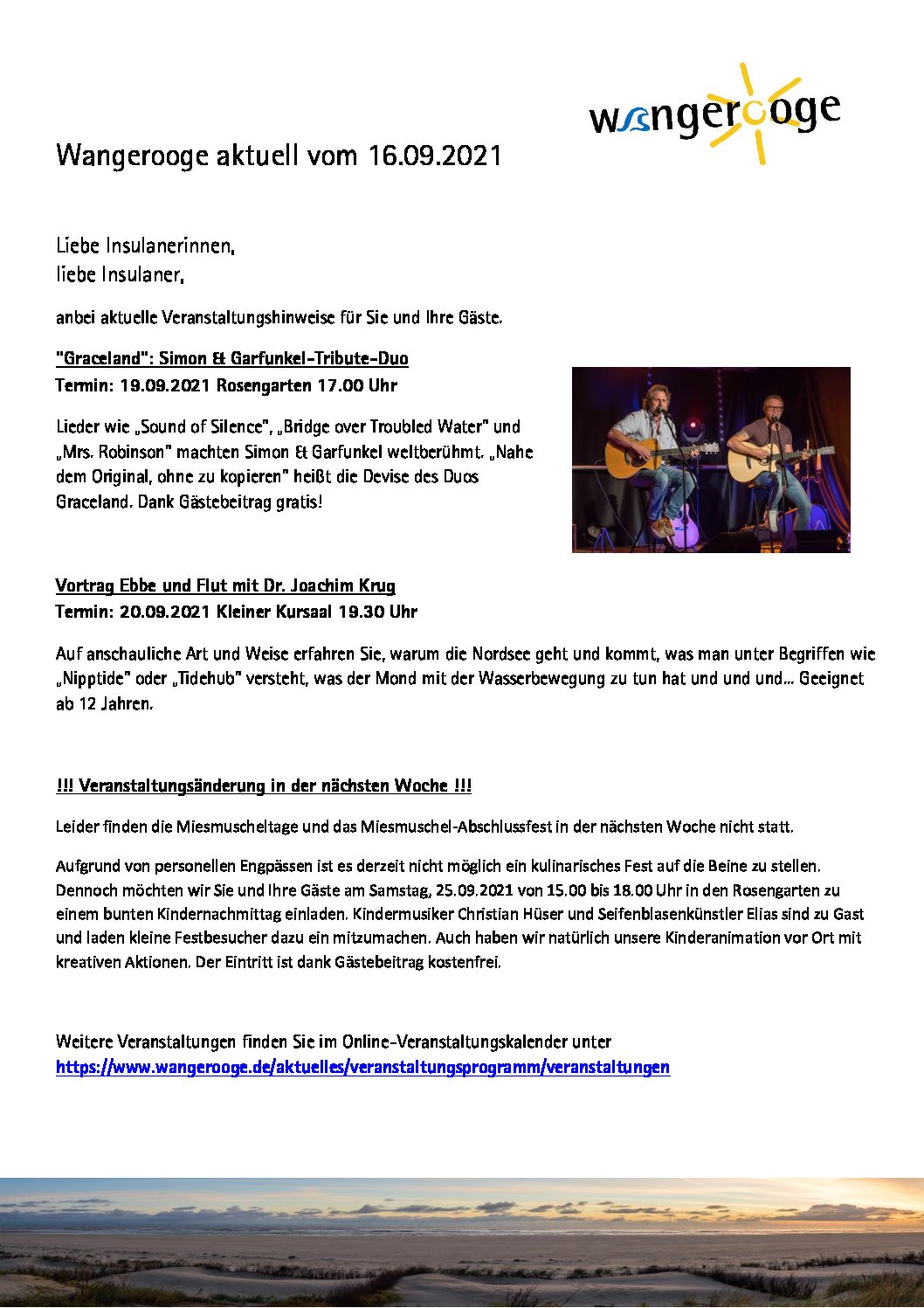 16.09.2021 Wangerooge Aktuell der Kurverwaltung