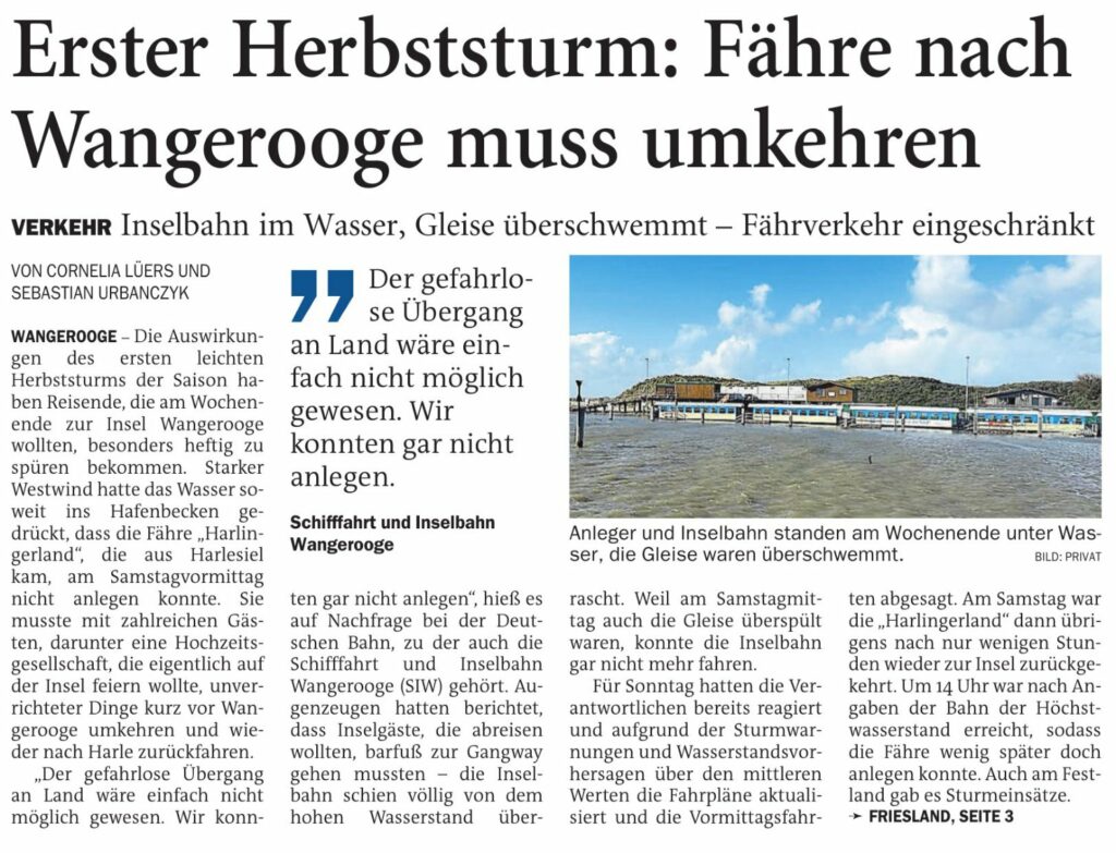Jeversches Wochenblatt Leute See 16.10.2023 Jeversches Wochenblatt – Erster Herbststurm – Fähre nach Wangerooge muss umkehren 15. Oktober 202315. Oktober 2023 peter Post Views: 744