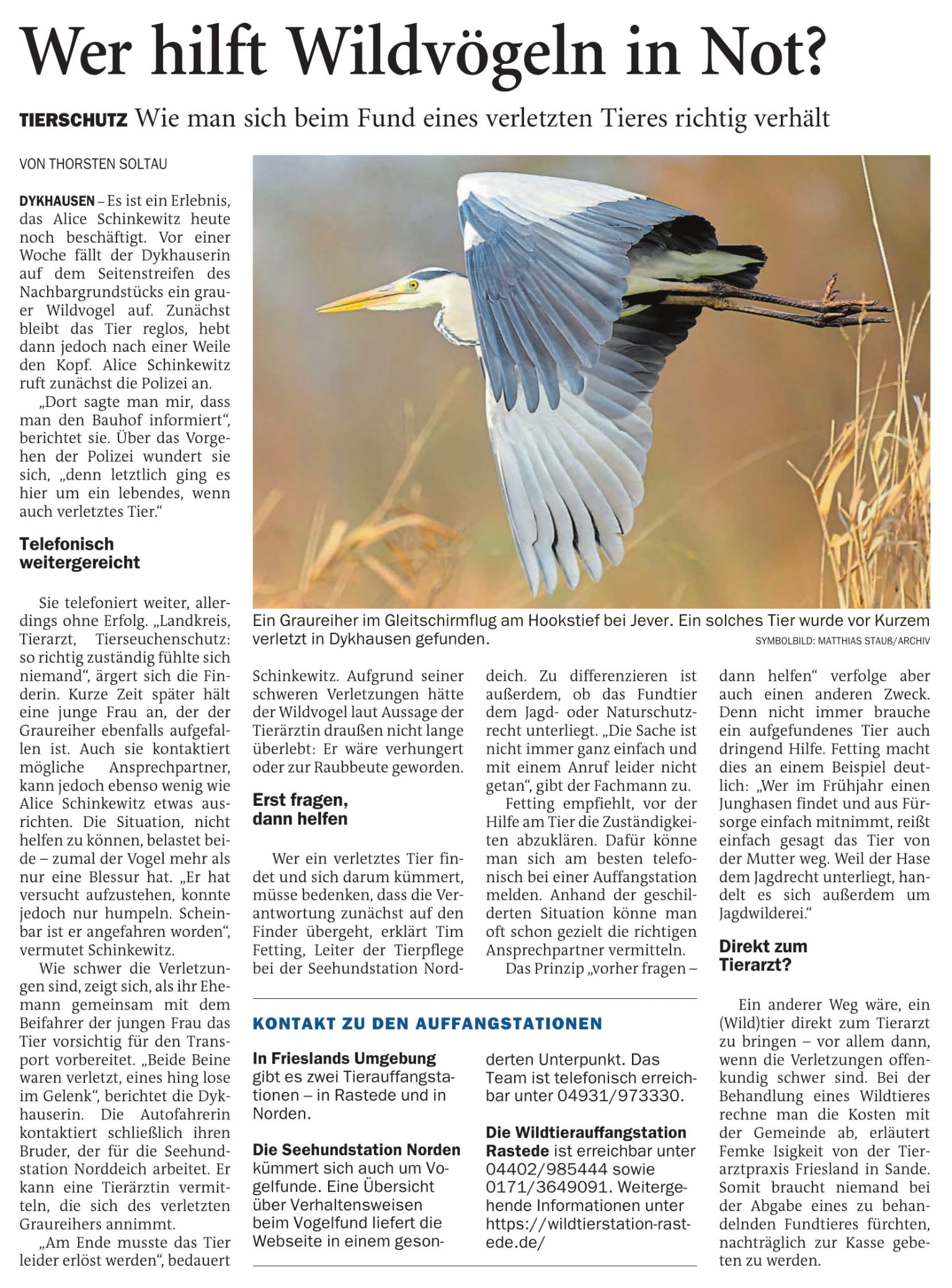 Jeversches Wochenblatt Leute Natur See 16.12.2025 Jeversches Wochenblatt – Wer hilft Wildvögeln in Not? 15. Dezember 202515. Dezember 2025 peter Post Views: 195