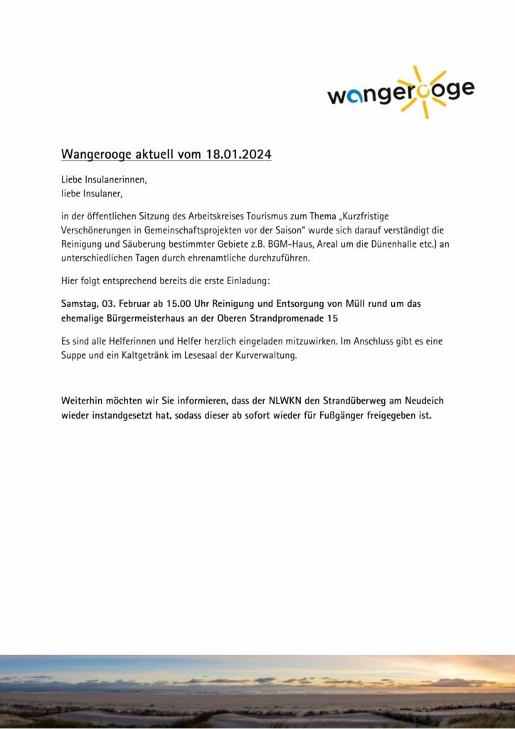 18.01.2024 Wangerooge Aktuell der Gemeindeverwaltung
