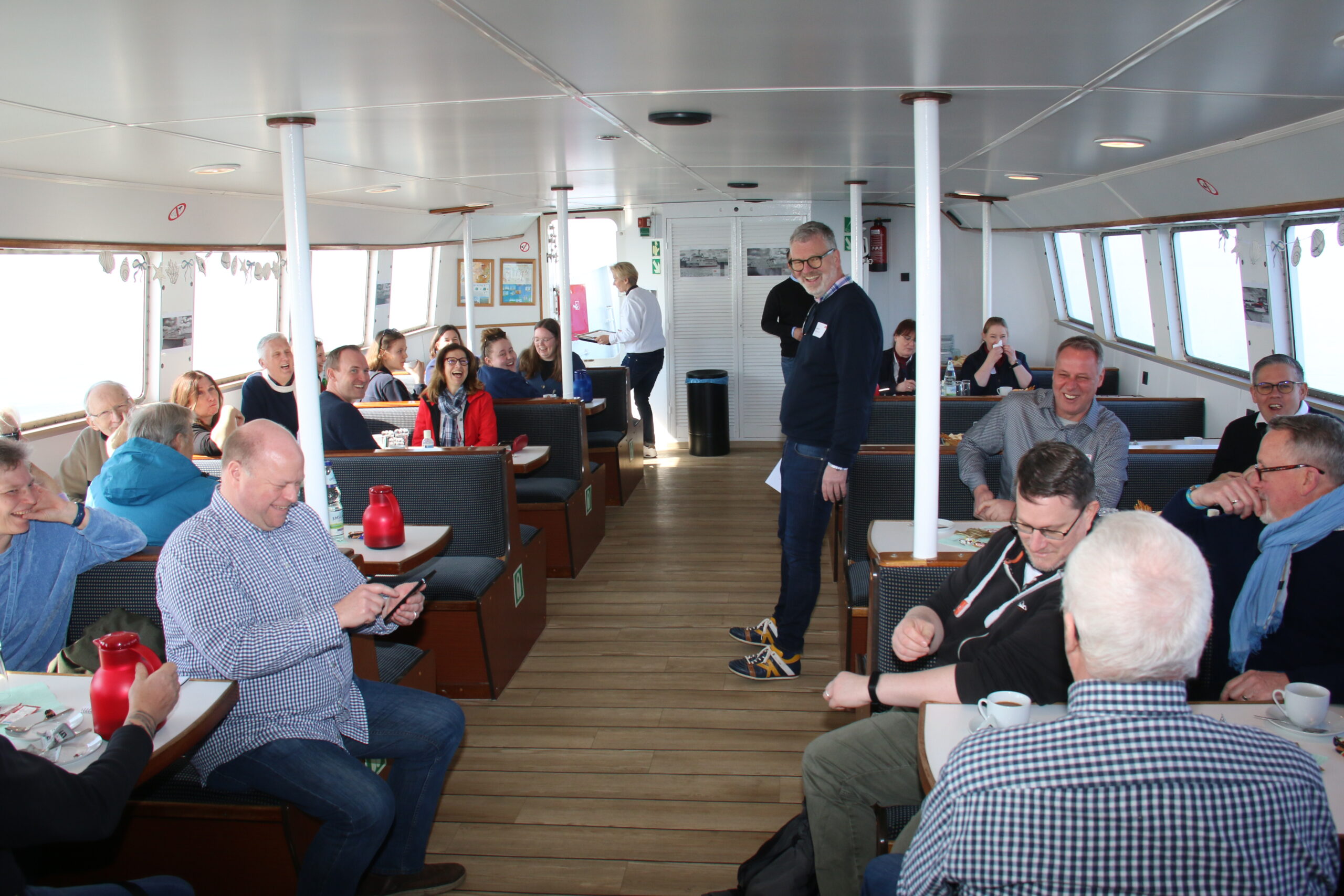 Am Donnerstag, den 19. März 2026 hatte die DB/SIW ihre Geschäftspartner zu einer Saisoneröffnungsfahrt auf See eingeladen. Von den einhundert verschickten Einladungen konnte der Chef der DB/SIW Schiffs und Inseldienst Wangerooge Martin Brüggemann gut die Hälfte auf der “Jens Albrecht III” begrüßen.