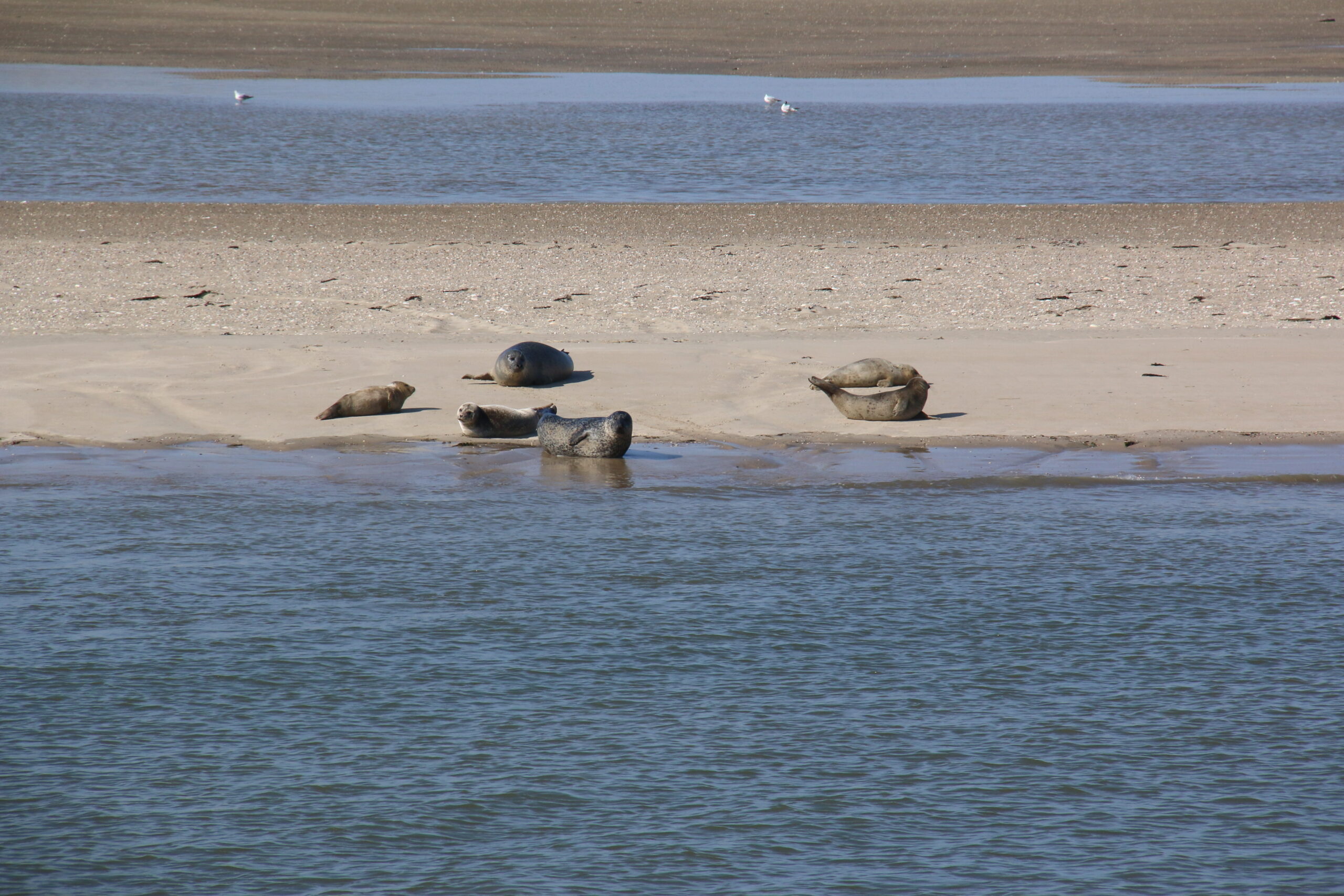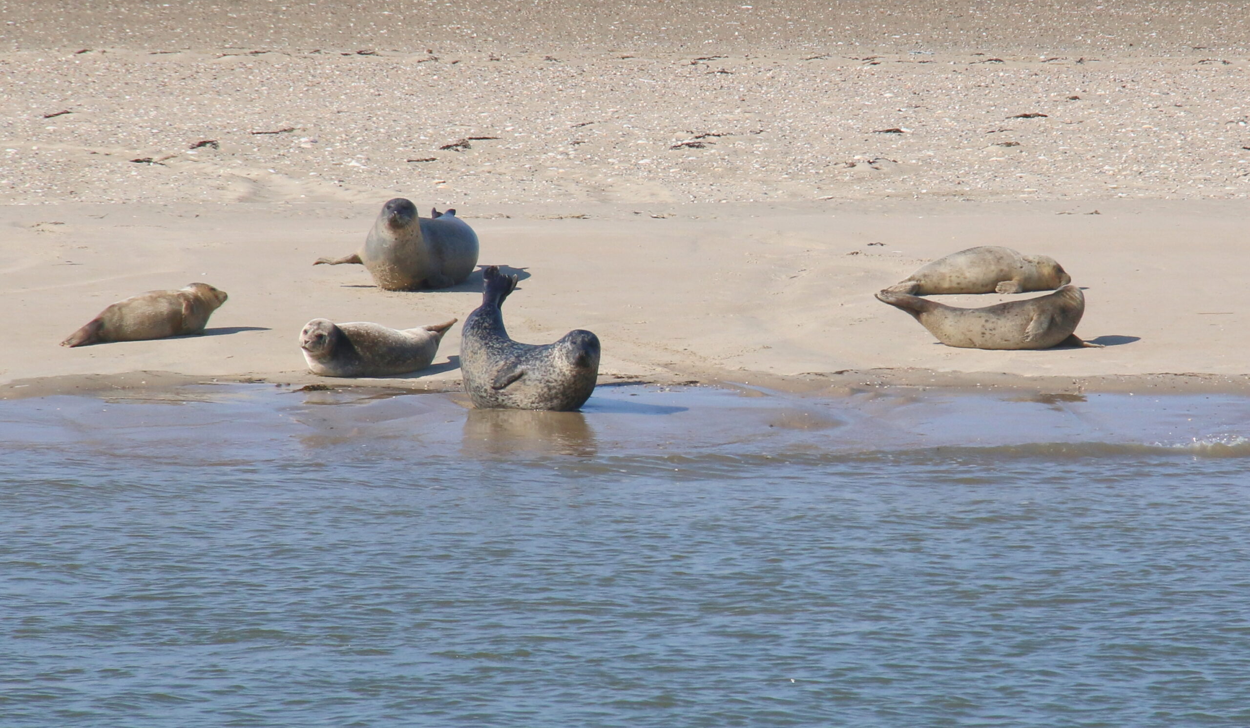 Und so war es dann auch! Bei herrlichstem Wetter, absolut blanker See, fand ein intensiver Austausch aller Beteiligten statt, die zudem noch einmalige Erlebnisse der Natur erleben durften. Vorbei an den Seehundsbänken ging die Fahrt zur Nordseite der Insel, wo man die Skyline mit den frisch aufgestllten Strandkörben am Strand bewundern konnte.