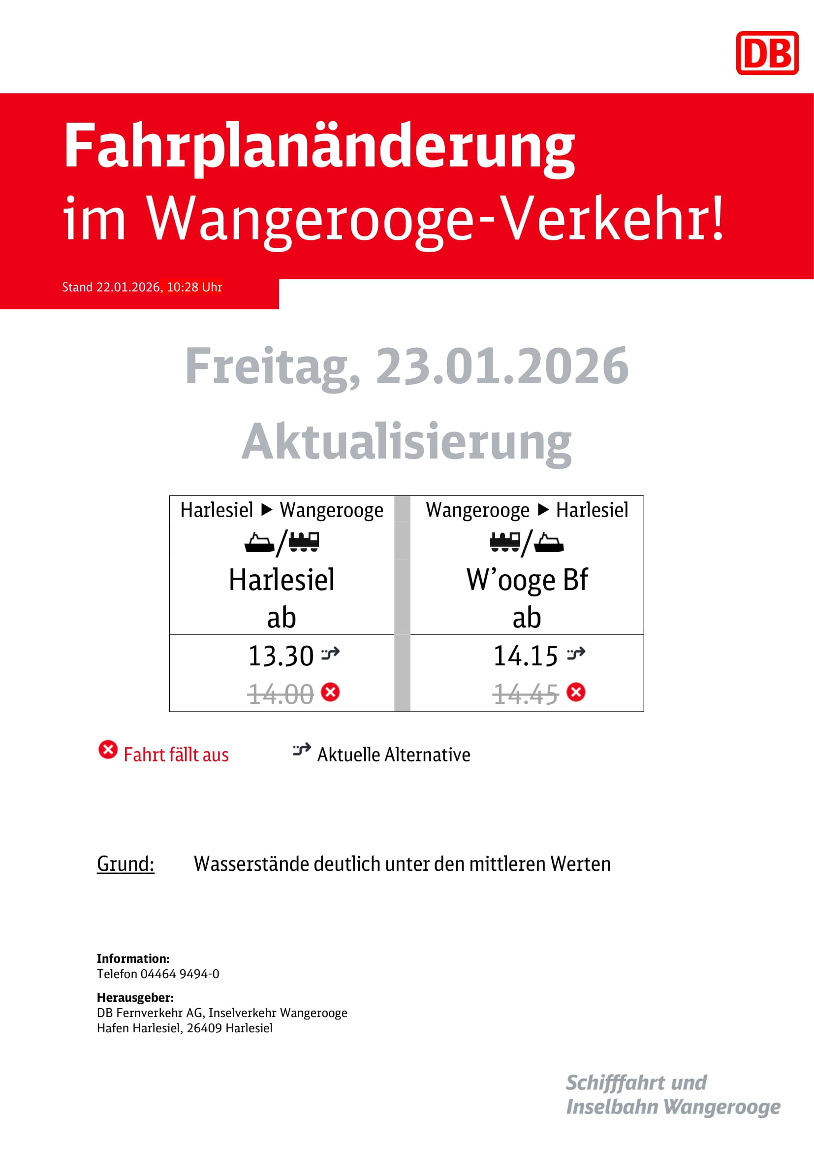 Aktuelles Leute See 20.01.2026 DB/SIW Fahrplanänderung Mi.21.01. bis Sa.24.01.2026 – Achtung Freitag, 23.01.2026 Aktualisierung! 20. Januar 202623. Januar 2026 peter 20.01.2026 DB/SIW Fahrplanänderung Mi.21.01. bis Sa.24.01.2026 - Achtung Freitag, 23.01.2026 Aktualisierung! Post Views: 536