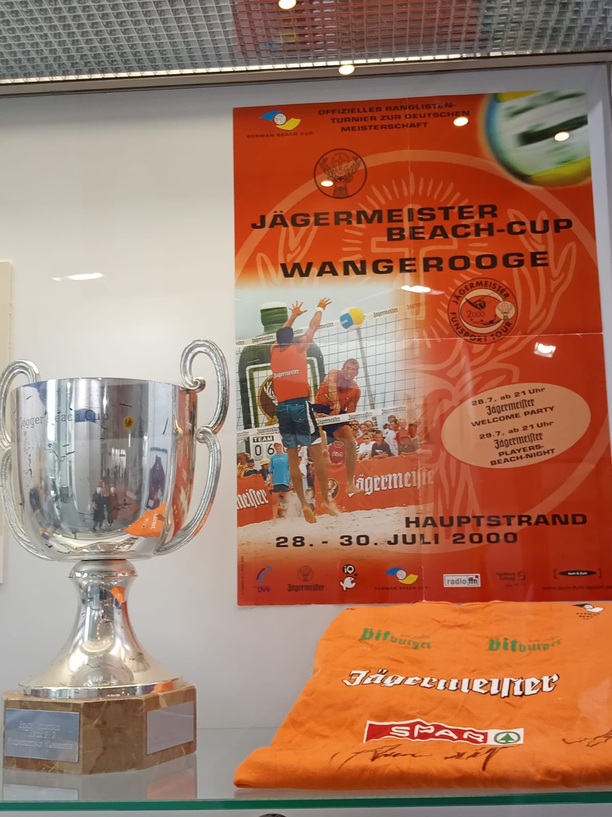 20.10.2021 Ausstellung im Landesmuseum Hannover – 75 Jahre Niedersachsen des NDR – Unser Schatz für Niedersachsen mit Pokal der Beachvolleyball-Turniere von Wangerooge 1992-2005
