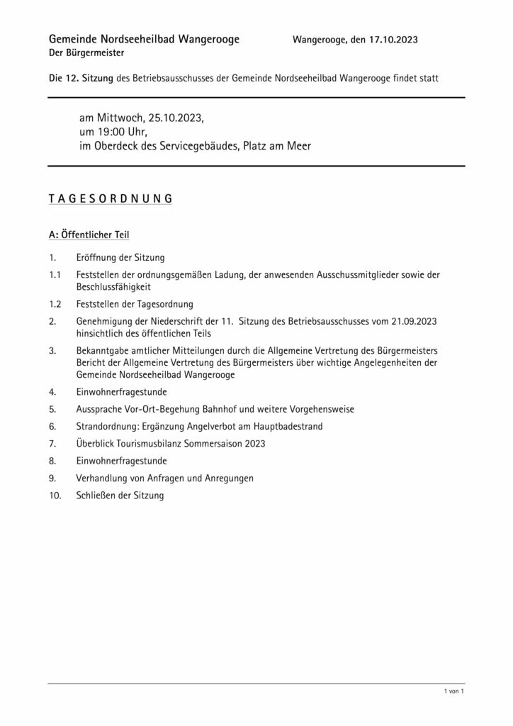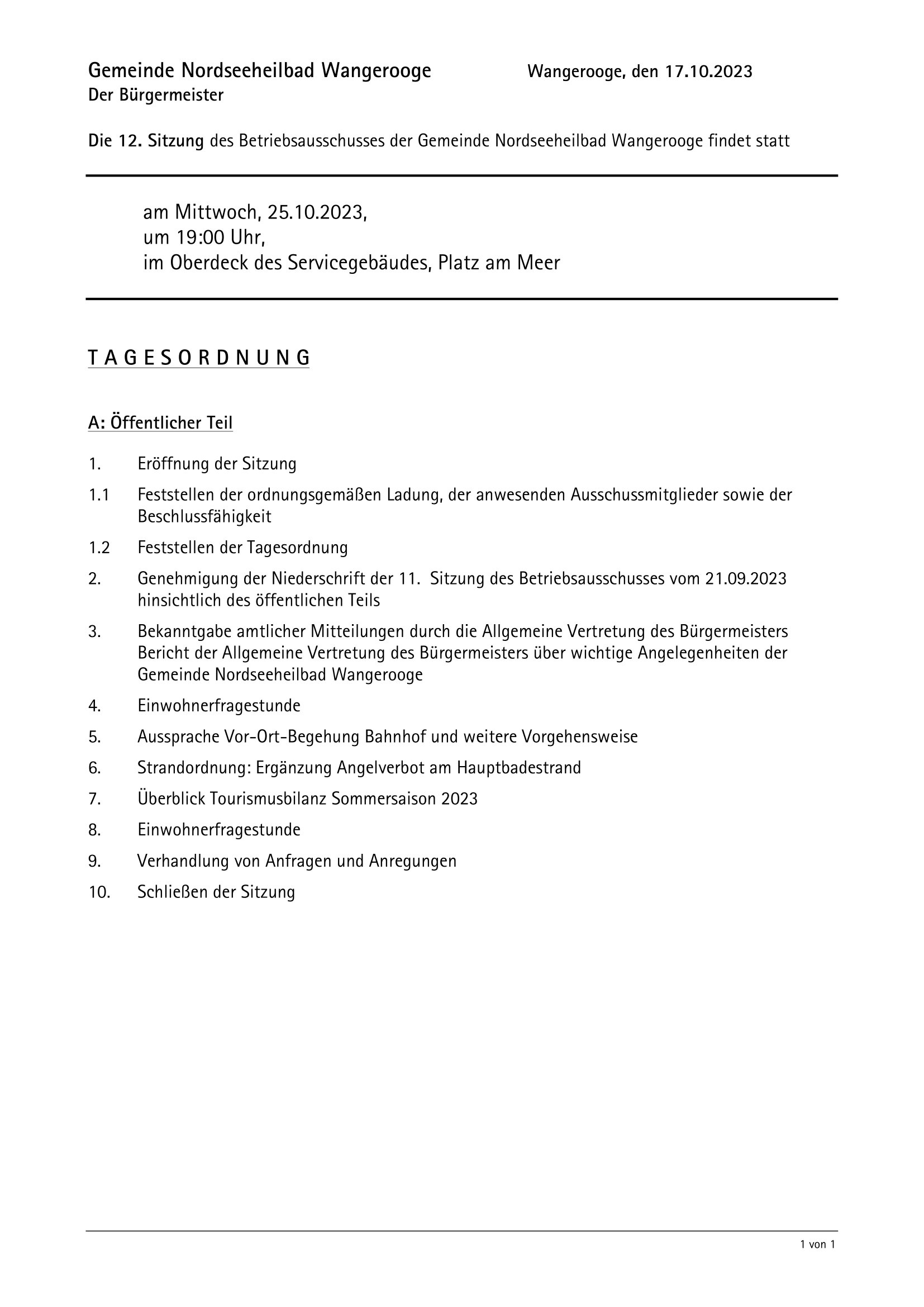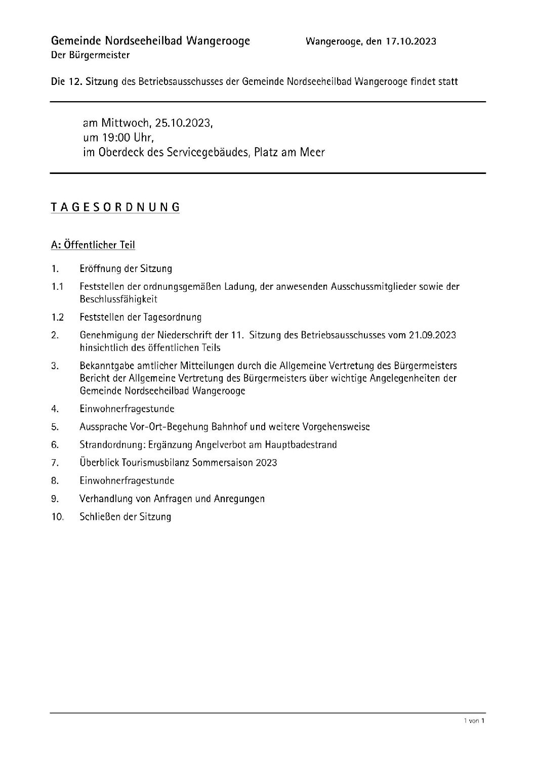 Aktuelles Leute Politik 20.10.2023 Einladung Betriebsausschuss Mi.25.102023, 19.00 Uhr Oberdeck 20. Oktober 202320. Oktober 2023 peter Post Views: 1.513