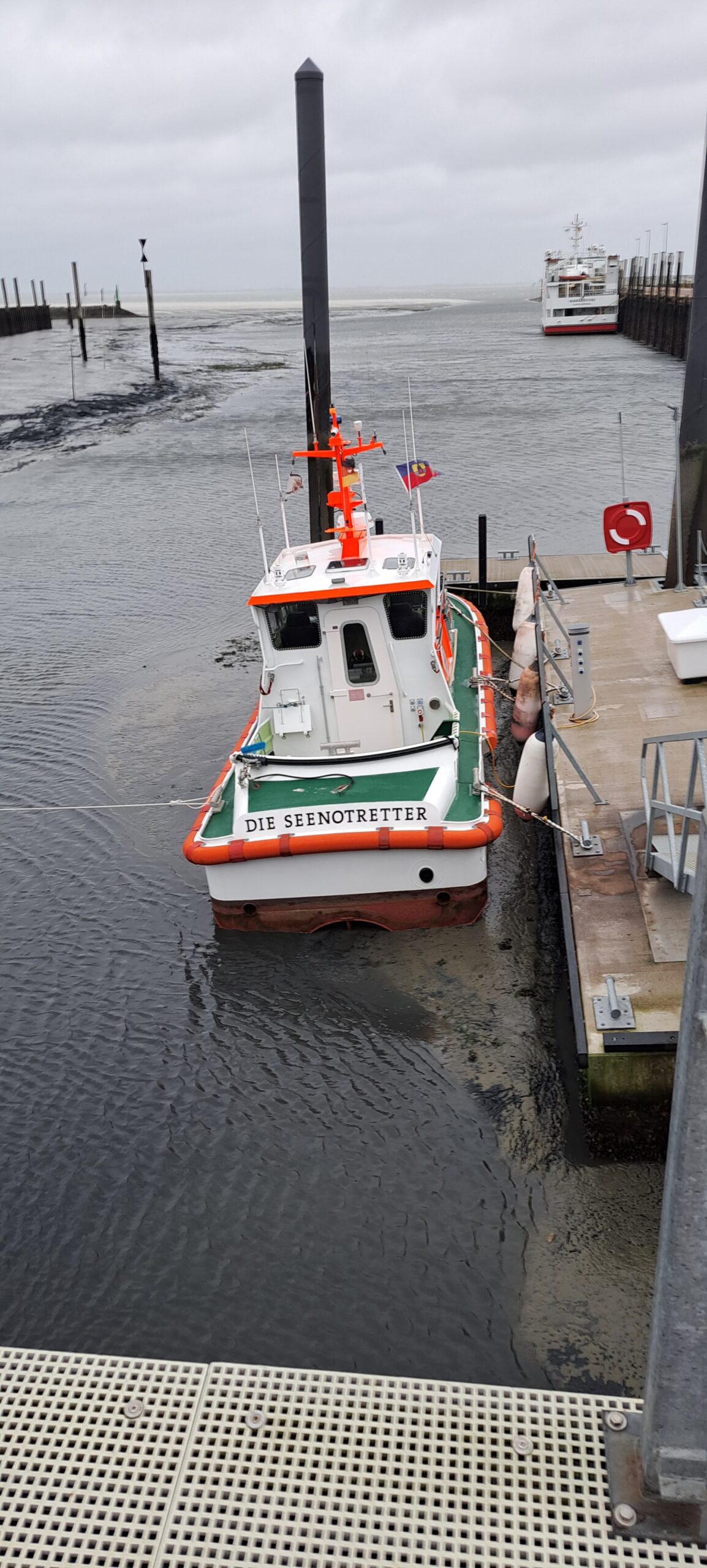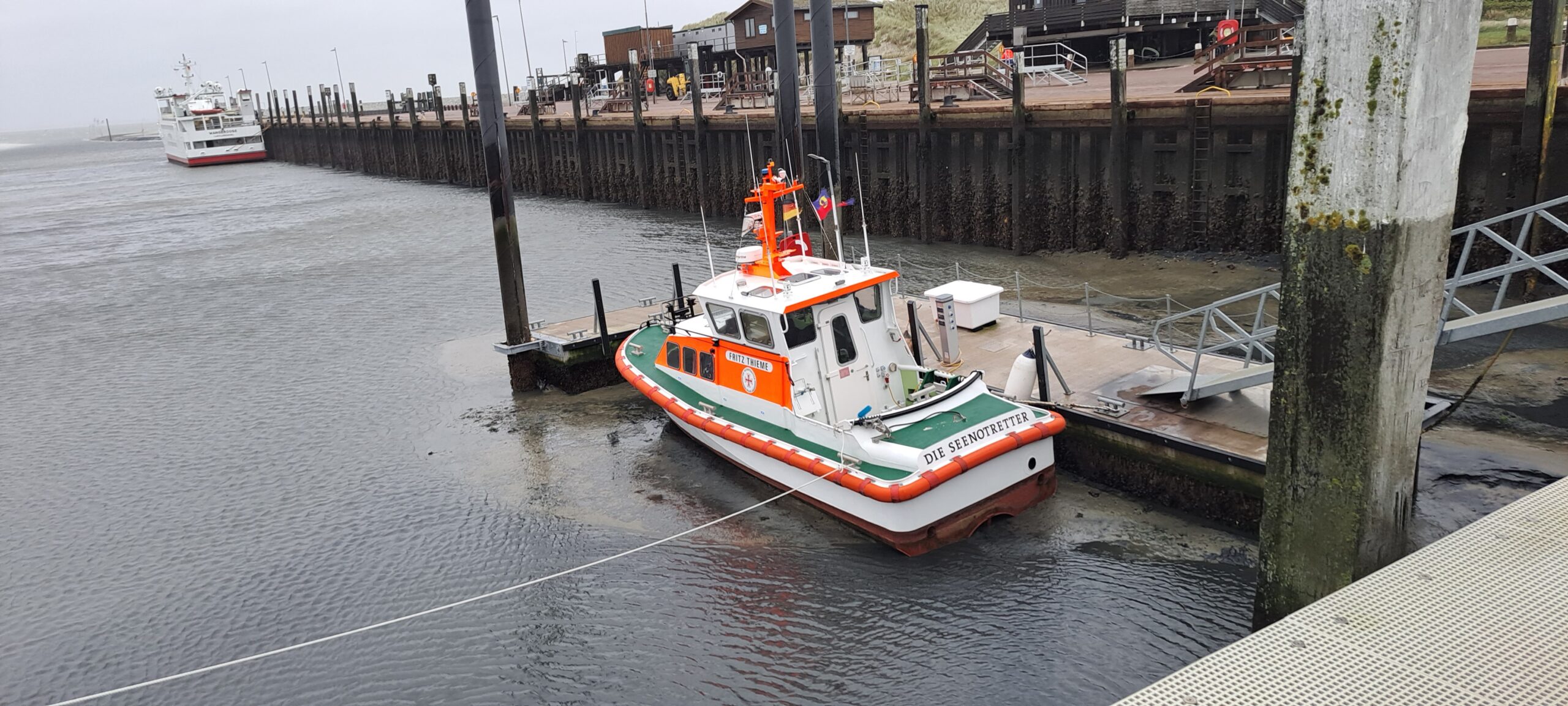 Bei dem Ostwind, der das Wasser zwischen den Ostfriesischen Inseln herausbläst, geht auch für das Seenotrettungsboot der DGzRS “Fritz Thieme” nichts mehr, das Boot liegt auf dem Sand im Hafen von Wangerooge. Die Fotos hat uns freundlicher Weise der Vormann der “Fritz Thieme” Roger Riehl zugesandt.