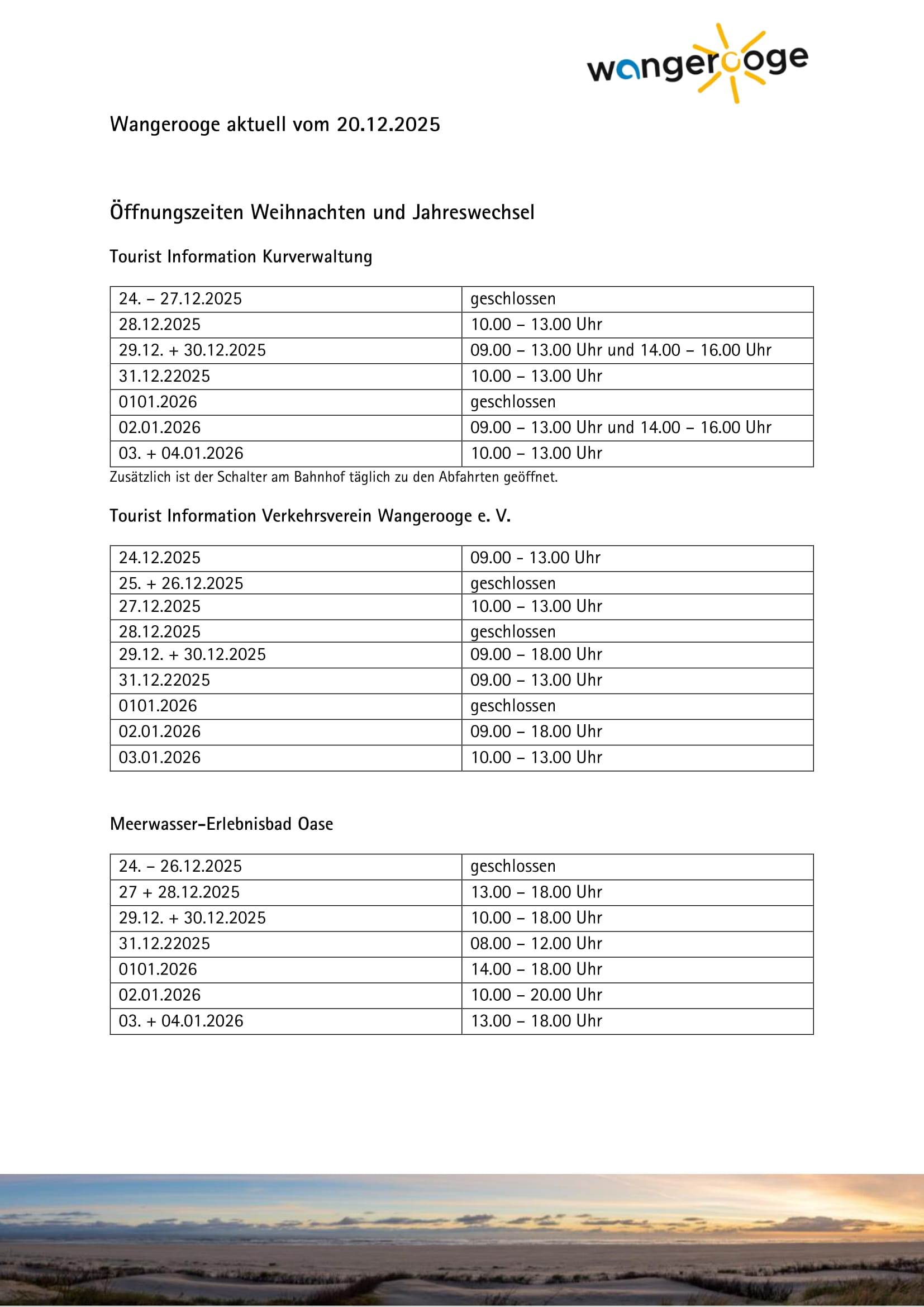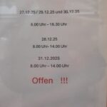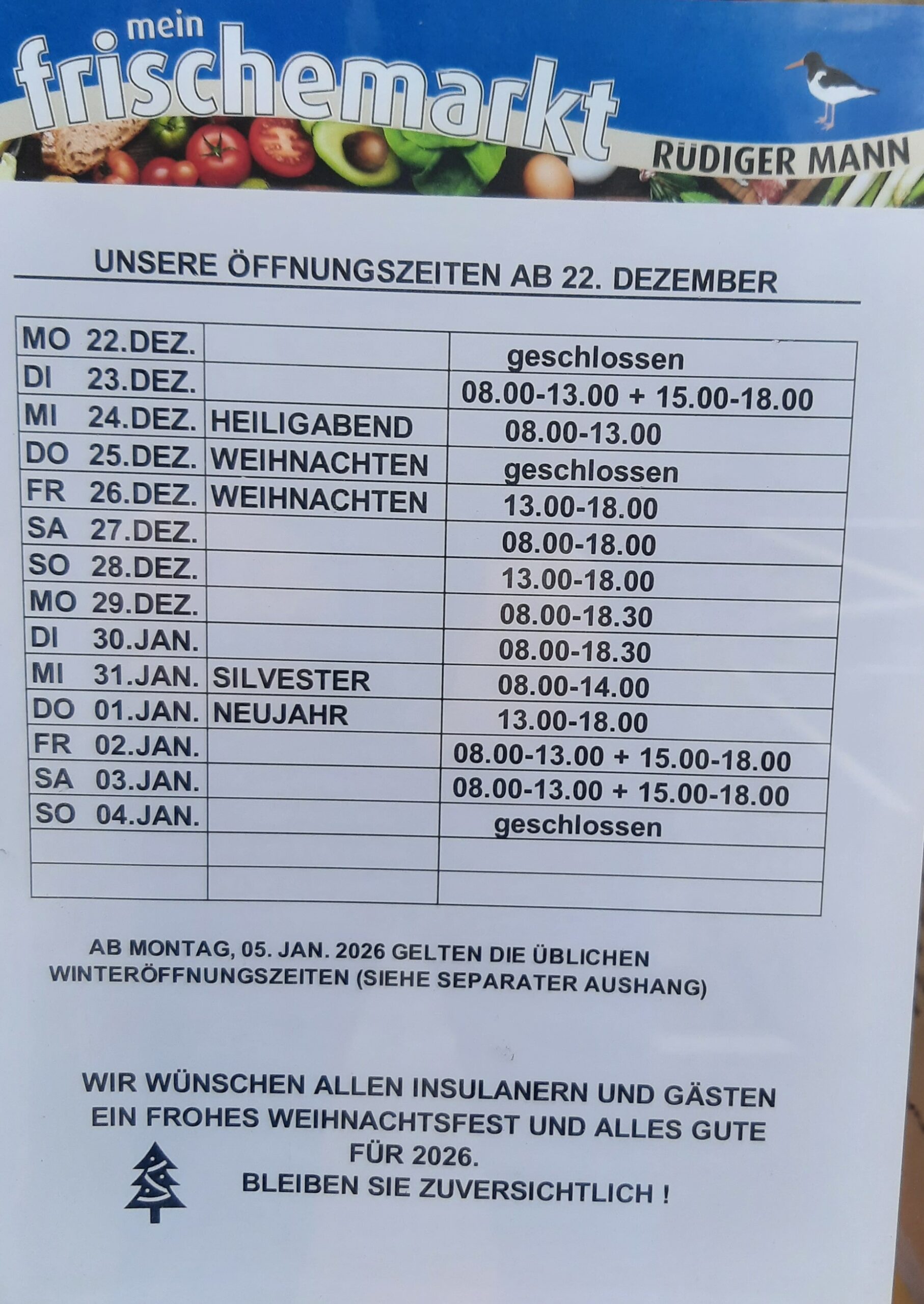 Aktuelles Leute 20.12.2025 Öffnungszeiten Touristische Einrichtungen und Lebensmittel-Einzelhandel zu Weihnachten und Jahreswechsel 20. Dezember 202520. Dezember 2025 peter 20.12.2025 Öffnungszeiten Touristische Einrichtungen und Lebensmittel-Einzelhandel zu Weihnachten und Jahreswechsel Post Views: 57