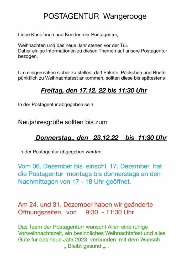 Aktuelles Leute 21.11.2022 Postagentur informiert zur Weihnachts- und Neujahrspostversendung 21. November 202221. November 2022 peter 21.11.2022 Postagentur informiert zur Weihnachts- und Neujahrspostversendung Post Views: 278