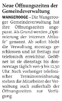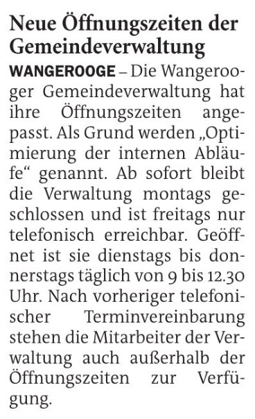 Jeversches Wochenblatt Leute 23.10.2023 Jeversches Wochenblatt – Neue Öffnungszeiten der Gemeindeverwaltung 22. Oktober 202322. Oktober 2023 peter Post Views: 480