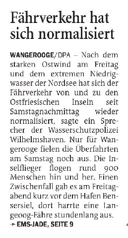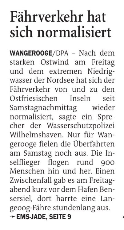 Jeversches Wochenblatt Leute See 23.10.2023 Jeversches Wochenblatt – Fährverkehr hat sich normalisiert 22. Oktober 202322. Oktober 2023 peter Post Views: 380