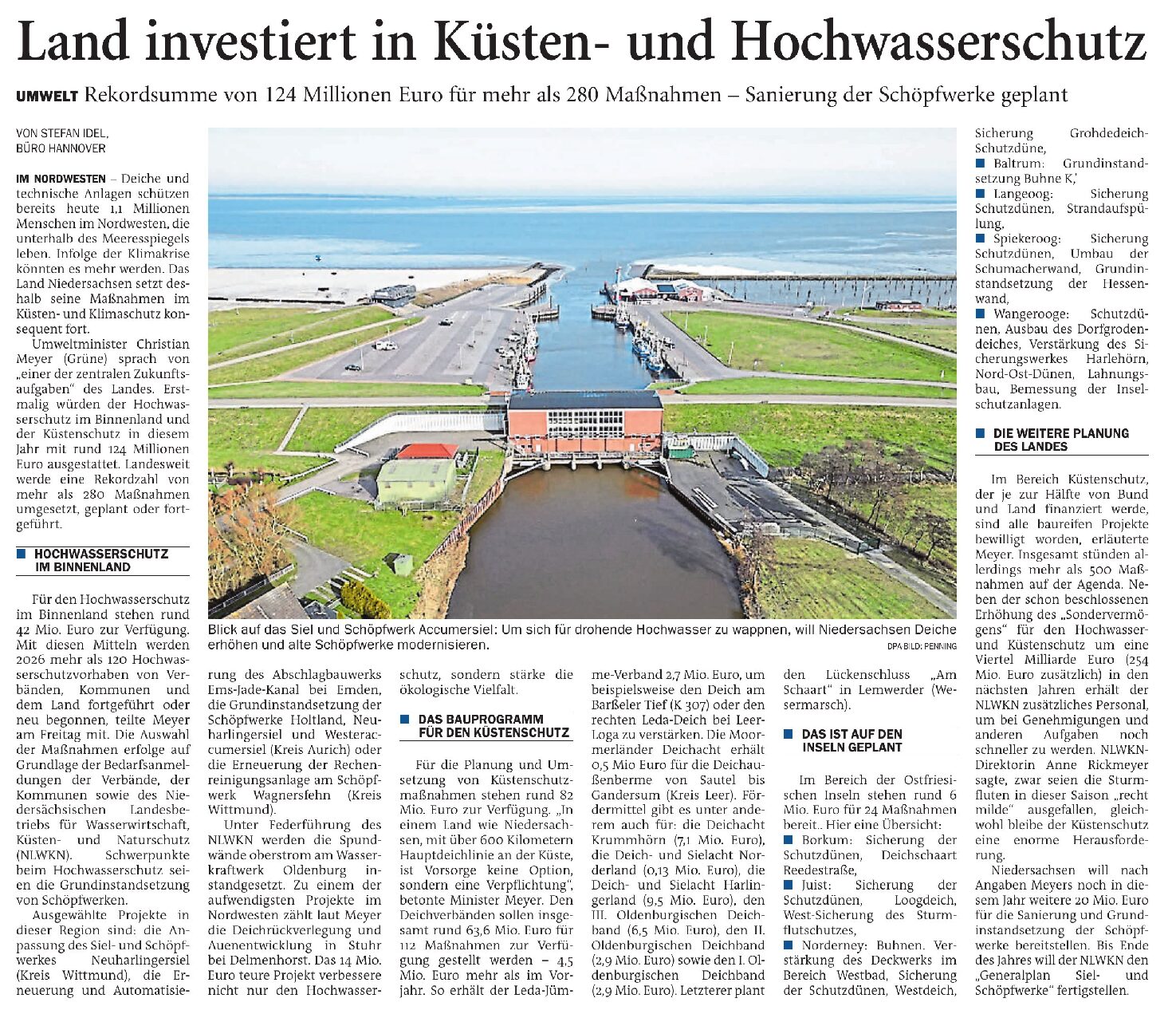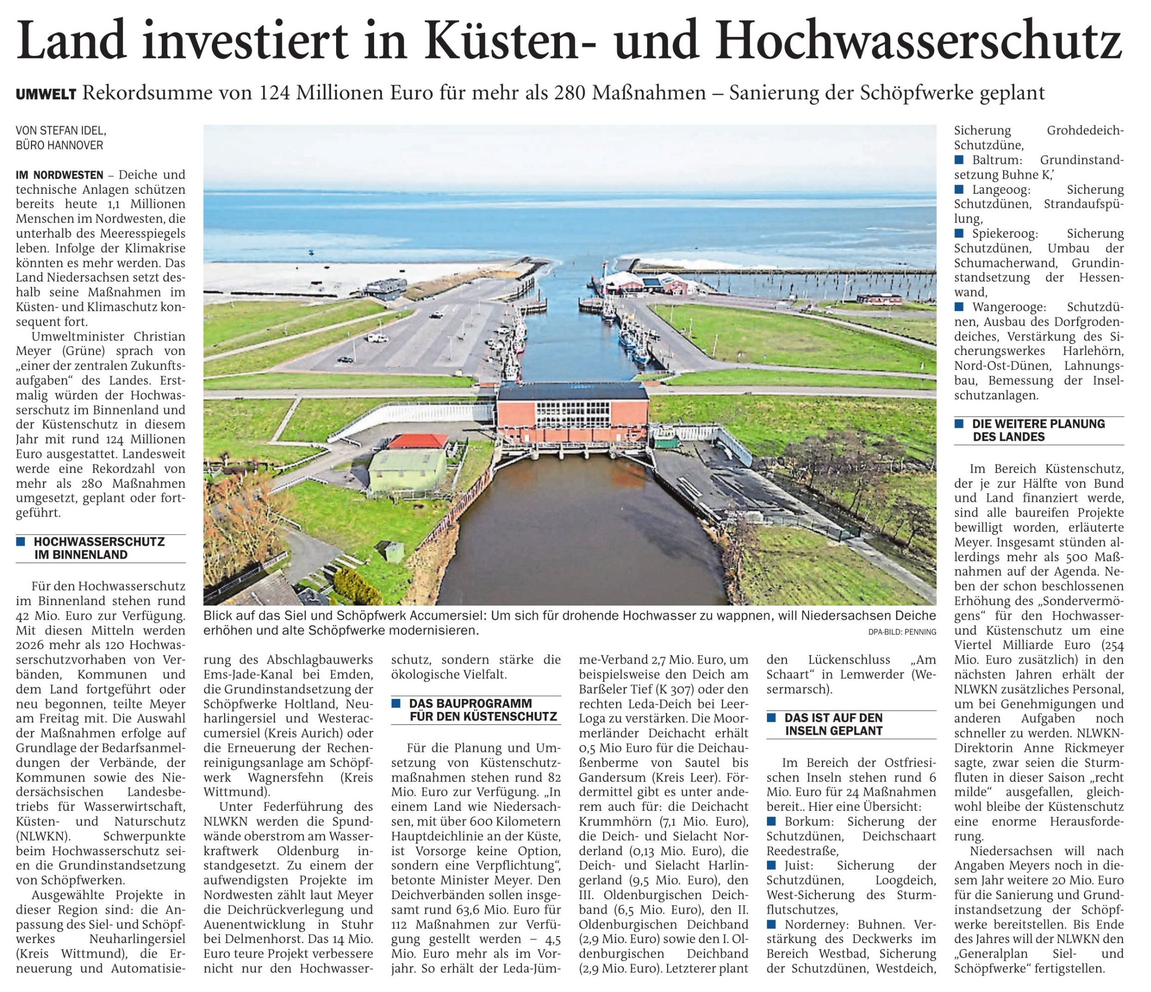 Jeversches Wochenblatt Leute See 24.03.2026 Jeversches Wochenblatt – Land investiert in Küsten- und Hochwasserschutz 23. März 202623. März 2026 peter Post Views: 5
