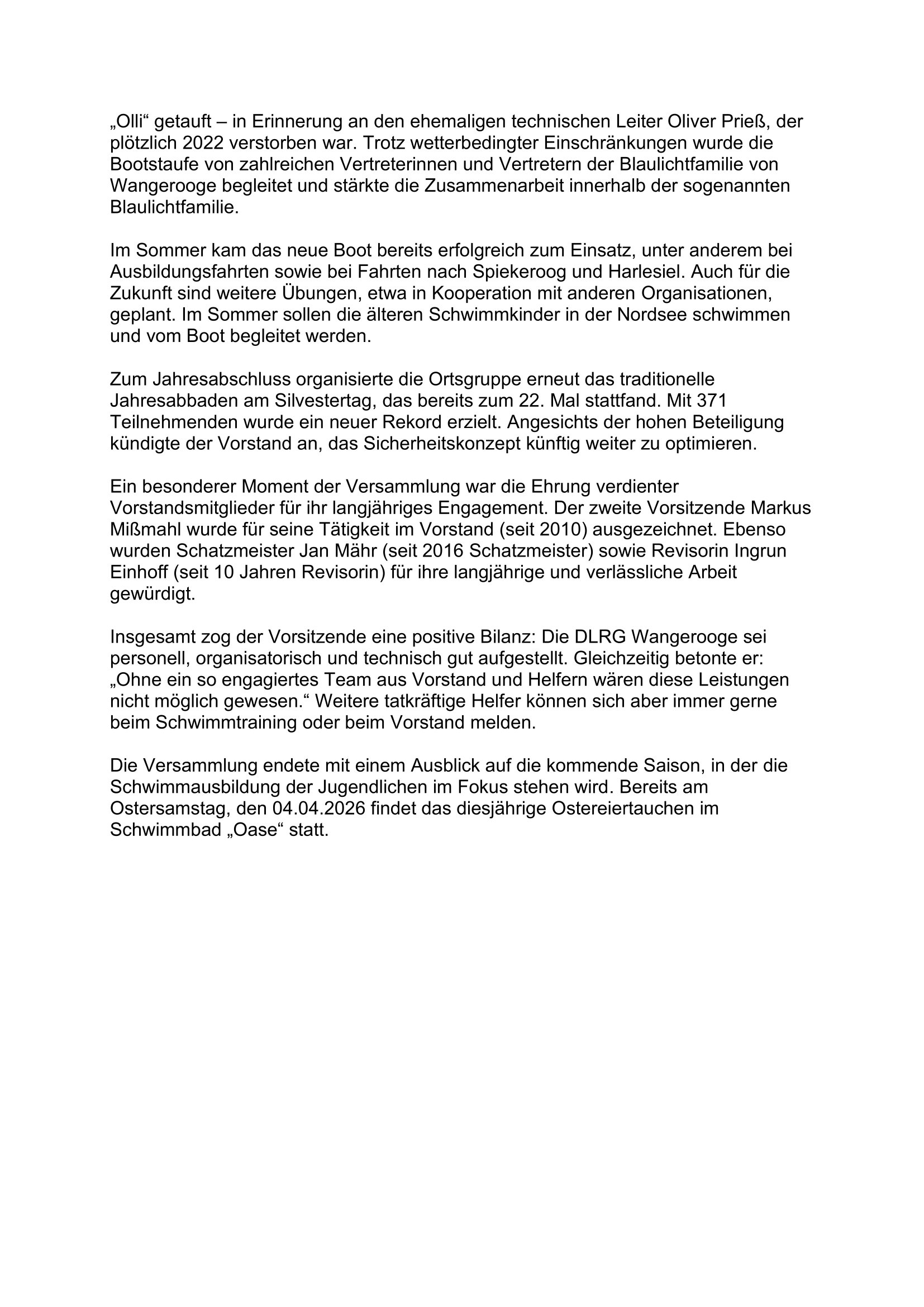 25.03.2026 Jahreshauptversammlung DLRG Ortsgruppe Wangerooge