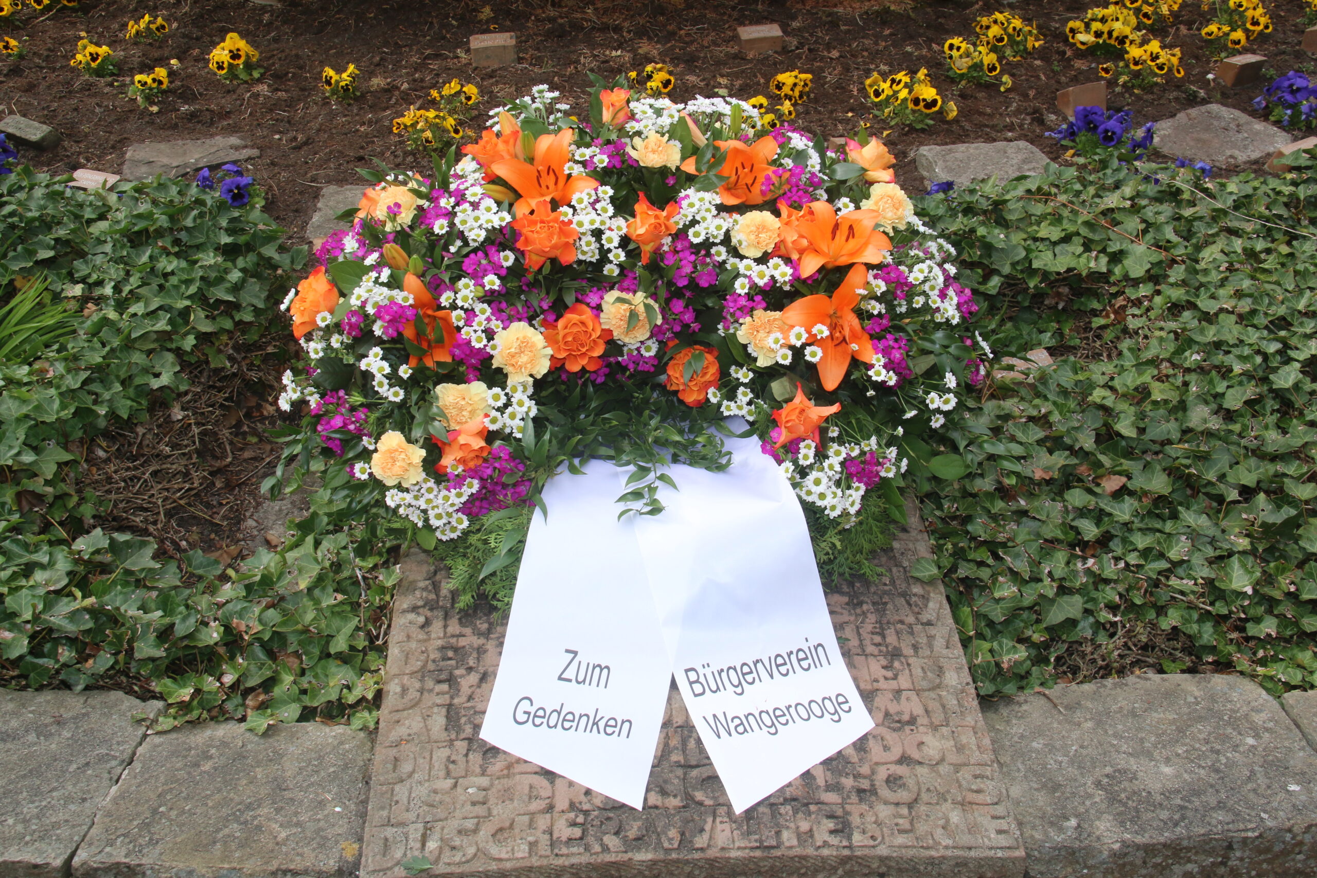 Kranzniederlegung am Ehrenmal am Fußweg zum Westen anlässlich des 80.Jahrestages der Bombardierung von Wangerooge am 25.04.1945.