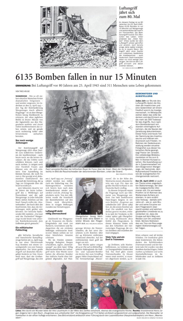 Jeversches Wochenblatt Leute 25.04.2025 Jeversches Wochenblatt – Luftangriff jährt sich zum 80. Mal – 6135 Bomben fallen in nur 15 Minuten 24. April 202524. April 2025 peter Post Views: 1.094